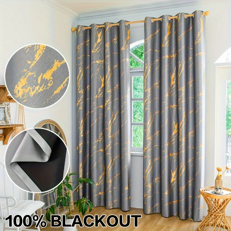 2 Stuks Gouden Folie Gedrukt Marmer Verduisterende Gordijnen – Privacy Raambekleding voor Woonkamer en Slaapkamer