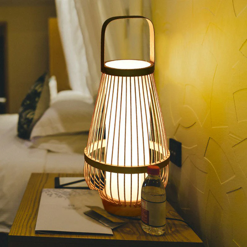 Gearceerde Nachtkastje Lamp – Eigentijdse Bamboe Tafelverlichting in Hout