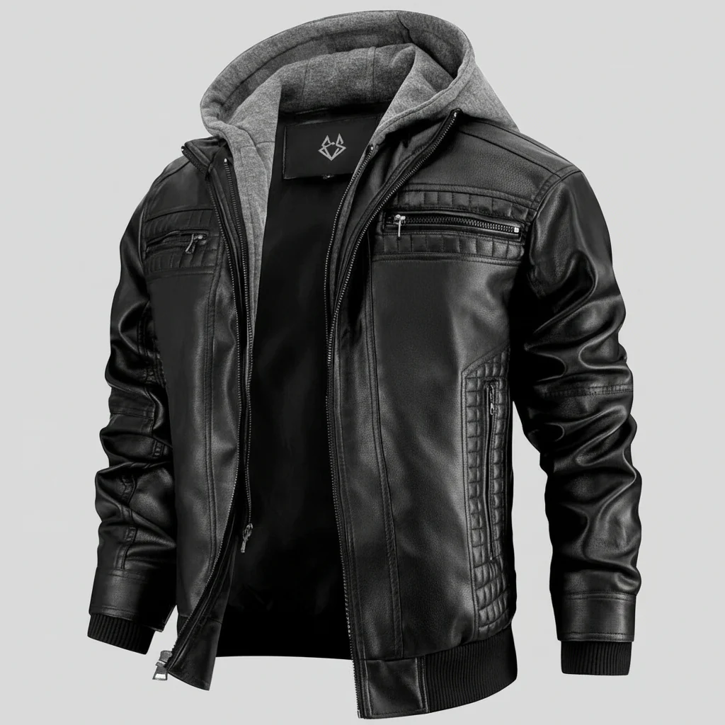 Heren Leren Bomberjas Afneembare Capuchon Robuuste Stijl