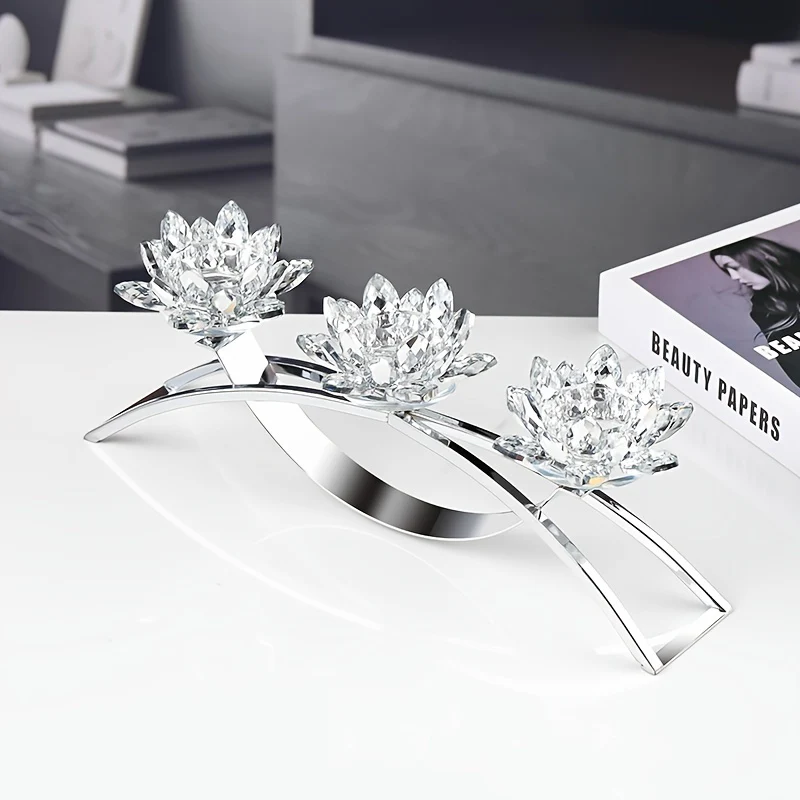 3-Armige Kristallen Lotus Kaarshouder – Elegante Tafeldecoratie
