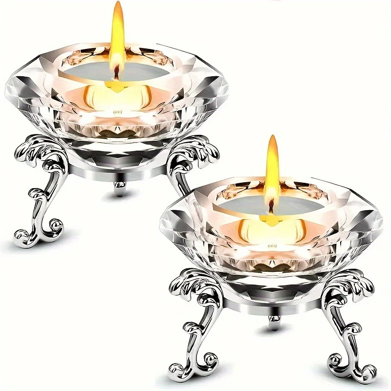 2-delige set transparante kristallen kandelaars – Europese stijl, romantische diamantkandelaar met metalen driehoekstandaard