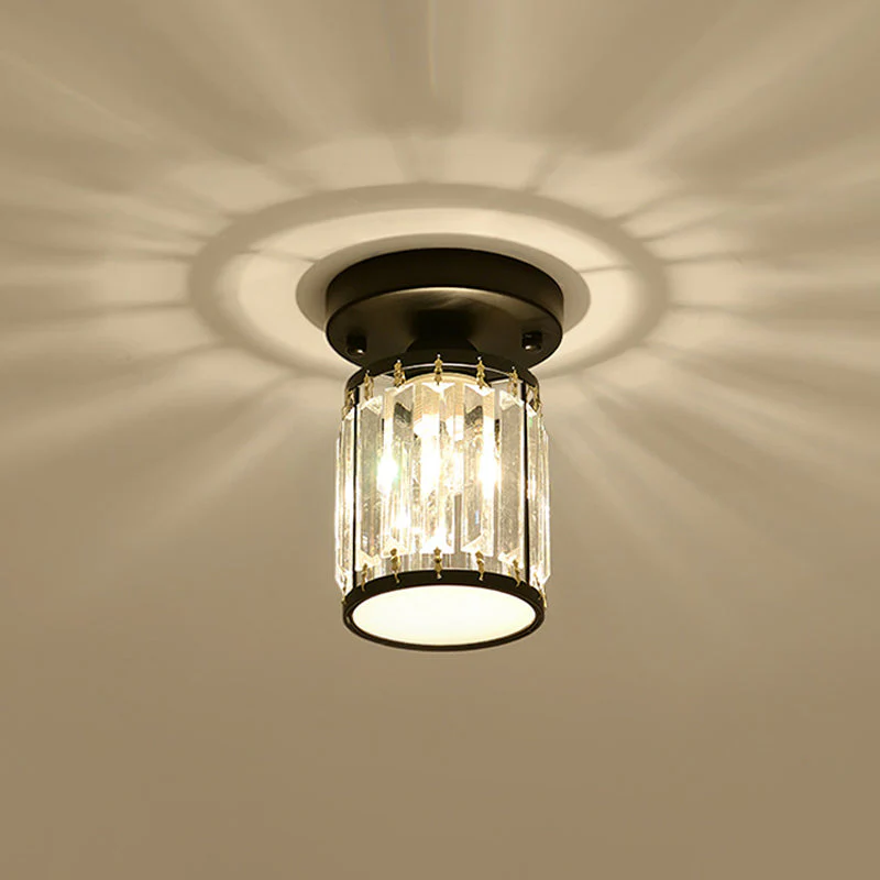Kristal Foyer Plafondlamp – Modern Zwart/Goud Semi-Flush Design