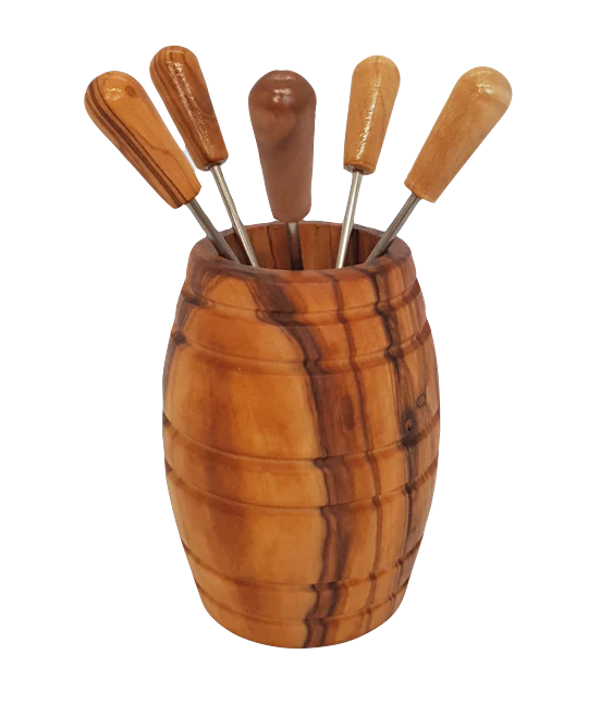 Tapasprikkers 5 stuks met Olijfhouten houder