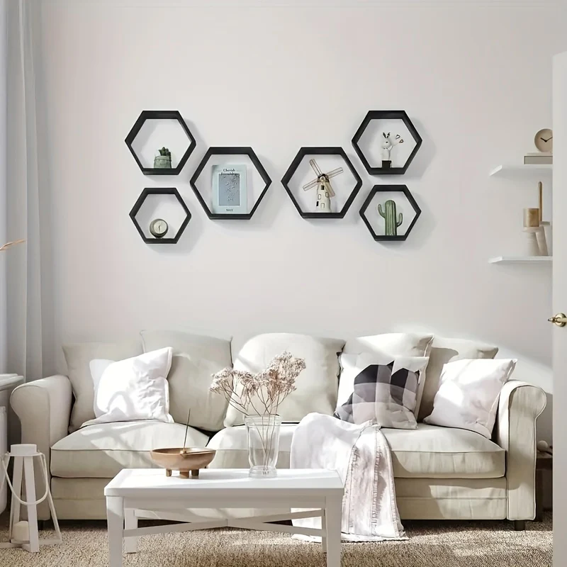 HexaWood – 3 Stuks Houten Zeshoekige Zwevende Wandplanken voor Keuken, Woonkamer & Slaapkamer