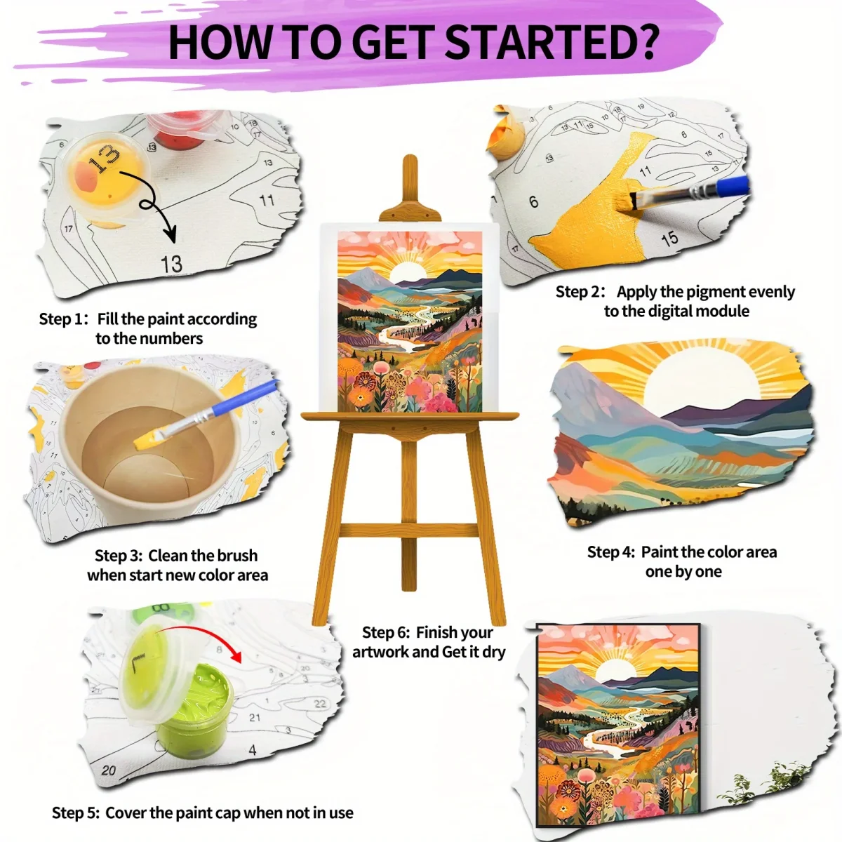 Maak je eigen meesterwerk met deze Zonsondergang Berglandschap Schilderen op Nummer set. Ideaal voor volwassenen die hun creatieve vaardigheden willen verbeteren of gewoon willen ontspannen. Deze set bevat alles wat je nodig hebt om een prachtig kunstwerk te creëren dat perfect is voor woonkamer, slaapkamer, of kantoor.