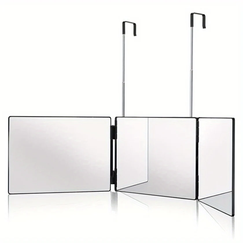 Deze 360° draaibare 3-zijdige spiegel is perfect voor het nauwkeurig knippen van je eigen haar en het aanbrengen van make-up. Met verstelbare hoogte en handige haken, biedt deze spiegel volledige flexibiliteit voor een duidelijk zicht vanuit elke hoek. Het opvouwbare ontwerp maakt het eenvoudig om de spiegel aan de muur te bevestigen of mee te nemen op reis. Bovendien werkt de spiegel zonder stroom of batterijen, wat hem ideaal maakt voor dagelijks gebruik en onderweg.
