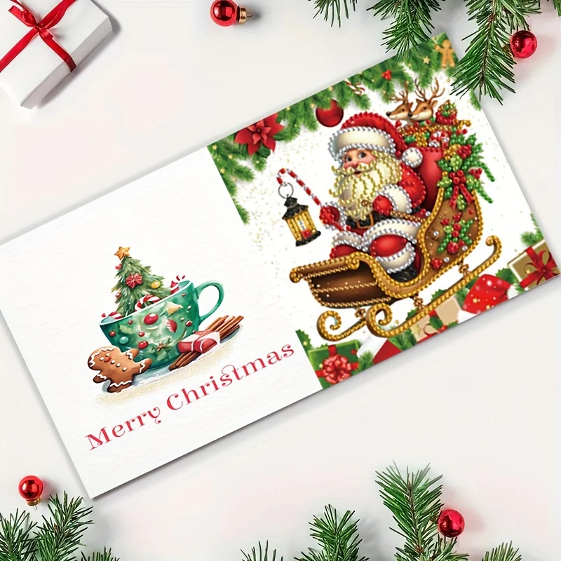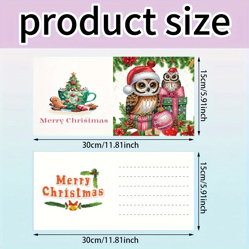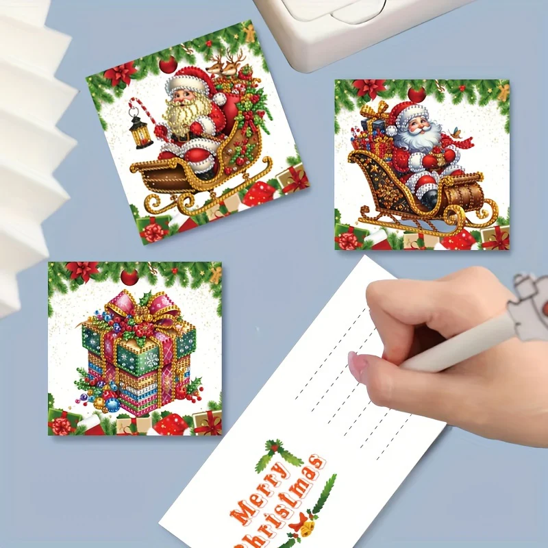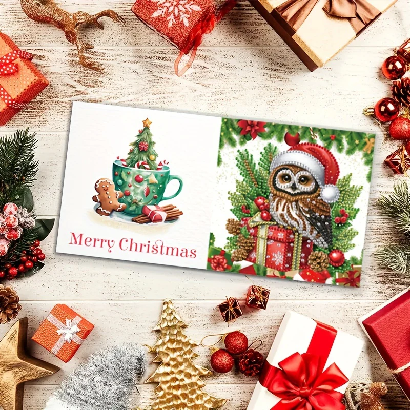 Met deze feestelijke 6-pack Diamond Painting Wenskaartenset kunt u uw kerstwensen op een creatieve manier overbrengen. De kaarten hebben prachtige, handgemaakte motieven zoals de Kerstman, uilen en cadeautjes, die samen de kerstgedachte uitstralen. Deze set is perfect voor knutselliefhebbers en zorgt ervoor dat uw kerstgroeten nog specialer worden.