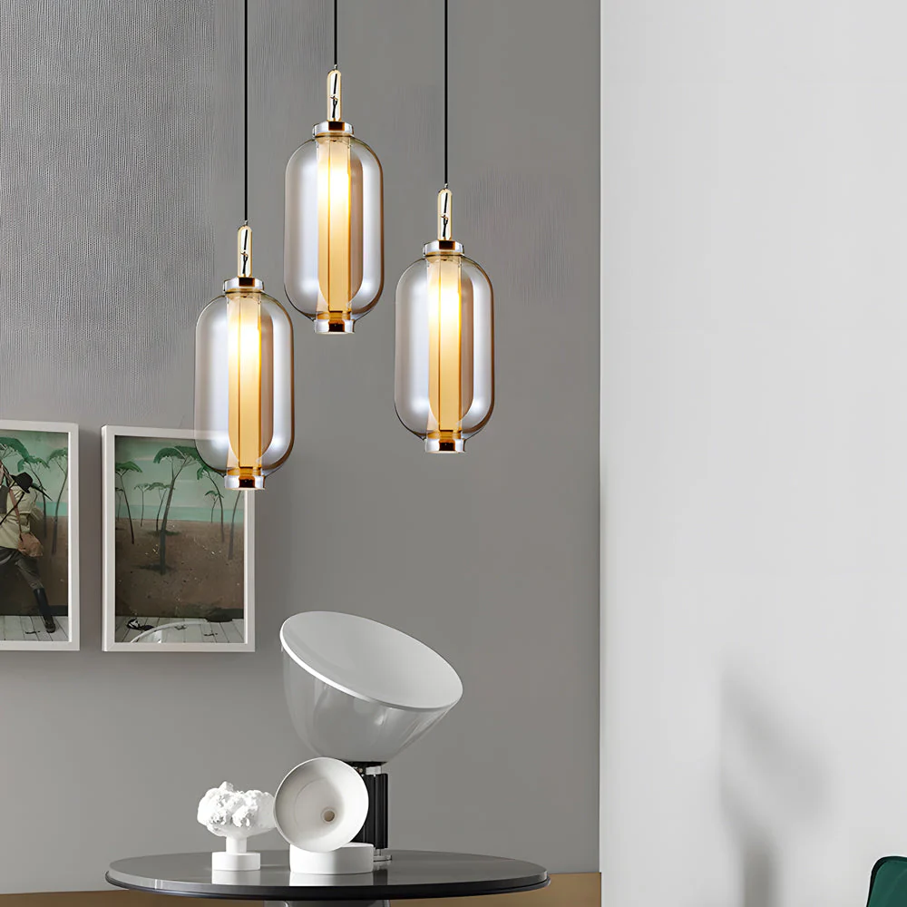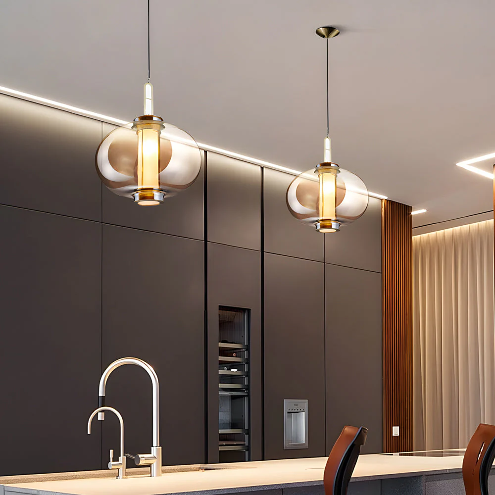 Amber Glazen Hanglamp: Onze hanglampen zijn gemaakt van handgeblazen dik glas en elektroplate hardware materialen. Het amberkleurige uiterlijk maakt ze geschikt voor het creëren van sfeerverlichting in elke kamer, perfect passend bij elk interieur.