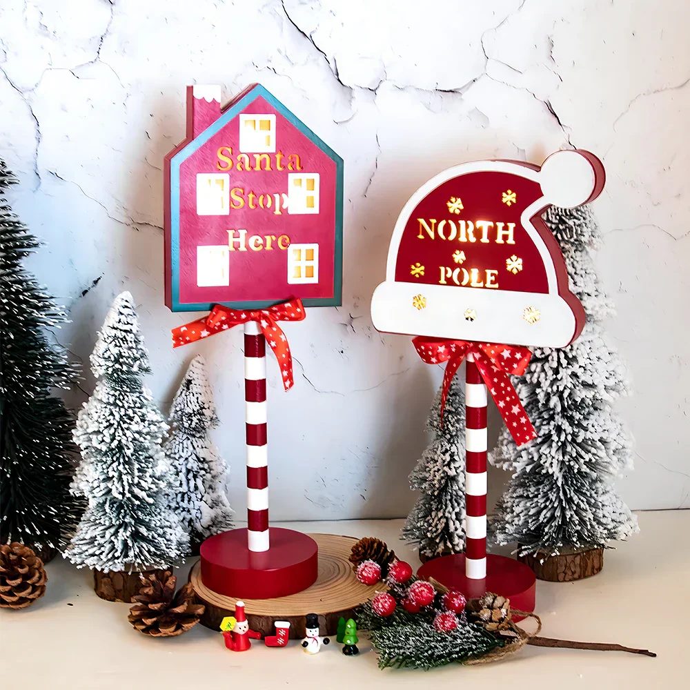 De Polaris Retro LED Noordpool Lamp voegt een unieke en speelse touch toe aan uw kerstdecoraties. Deze decoratieve lamp, geïnspireerd op het “Santa Stop Here” bord, straalt een warme en gezellige sfeer uit met zijn geïntegreerde LED-lampen. Gemaakt van hoogwaardig hout, is het perfect voor op uw tafel, bureau of als opvallende toevoeging aan uw kerstversiering.