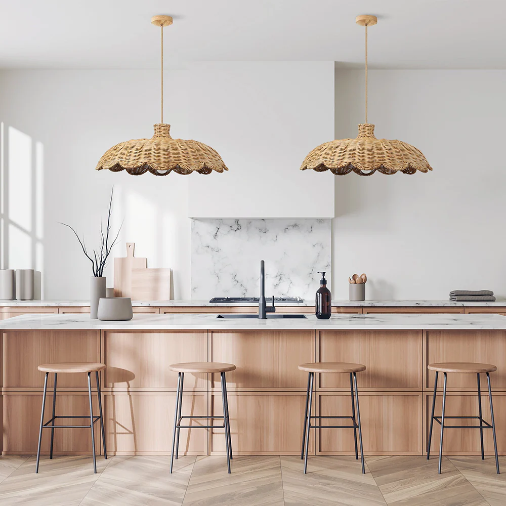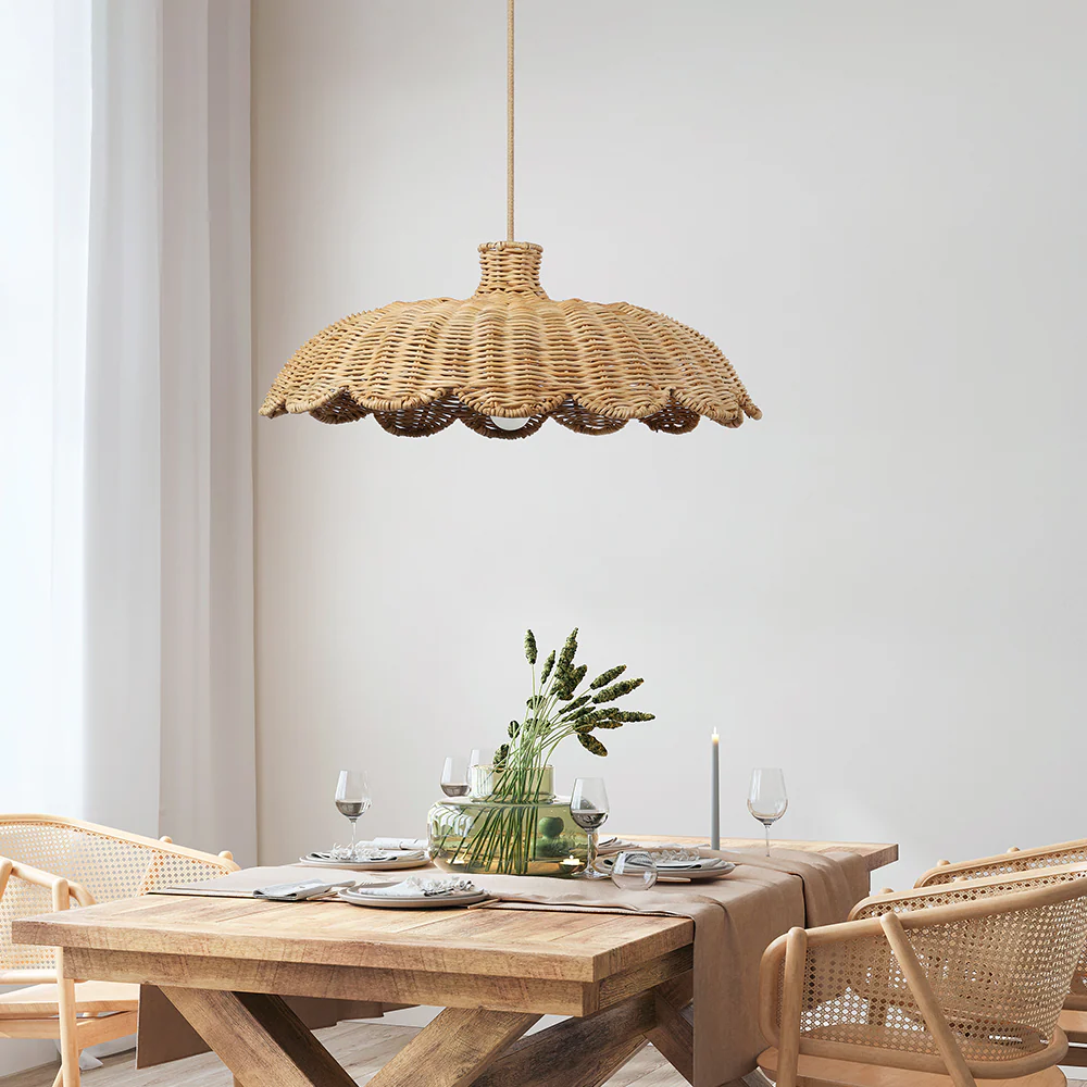 Deze hanglamp is vervaardigd uit hoogwaardig rattan en heeft een uniek ontwerp dat een vleugje verfijning toevoegt aan elke ruimte. Het handgeweven rattan creëert een warme en uitnodigende sfeer, terwijl de strakke lijnen en eigentijdse styling het een perfecte aanvulling maken voor moderne interieurs.