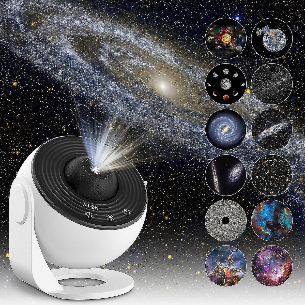 CelestiSphere 13-in-1 Planetarium Projector: Ontdek het universum thuis met onze unieke 13-in-1 planetarium projector. Ervaar de wonderen van de kosmos vanuit je eigen huis en verplaats jezelf naar verschillende virtuele werelden, waaronder het melkwegstelsel, het zonnestelsel, de aarde, de maan en meer. Met 13 weergavescenario’s om uit te kiezen, voelt het alsof je het universum rechtstreeks in je kamer verkent.