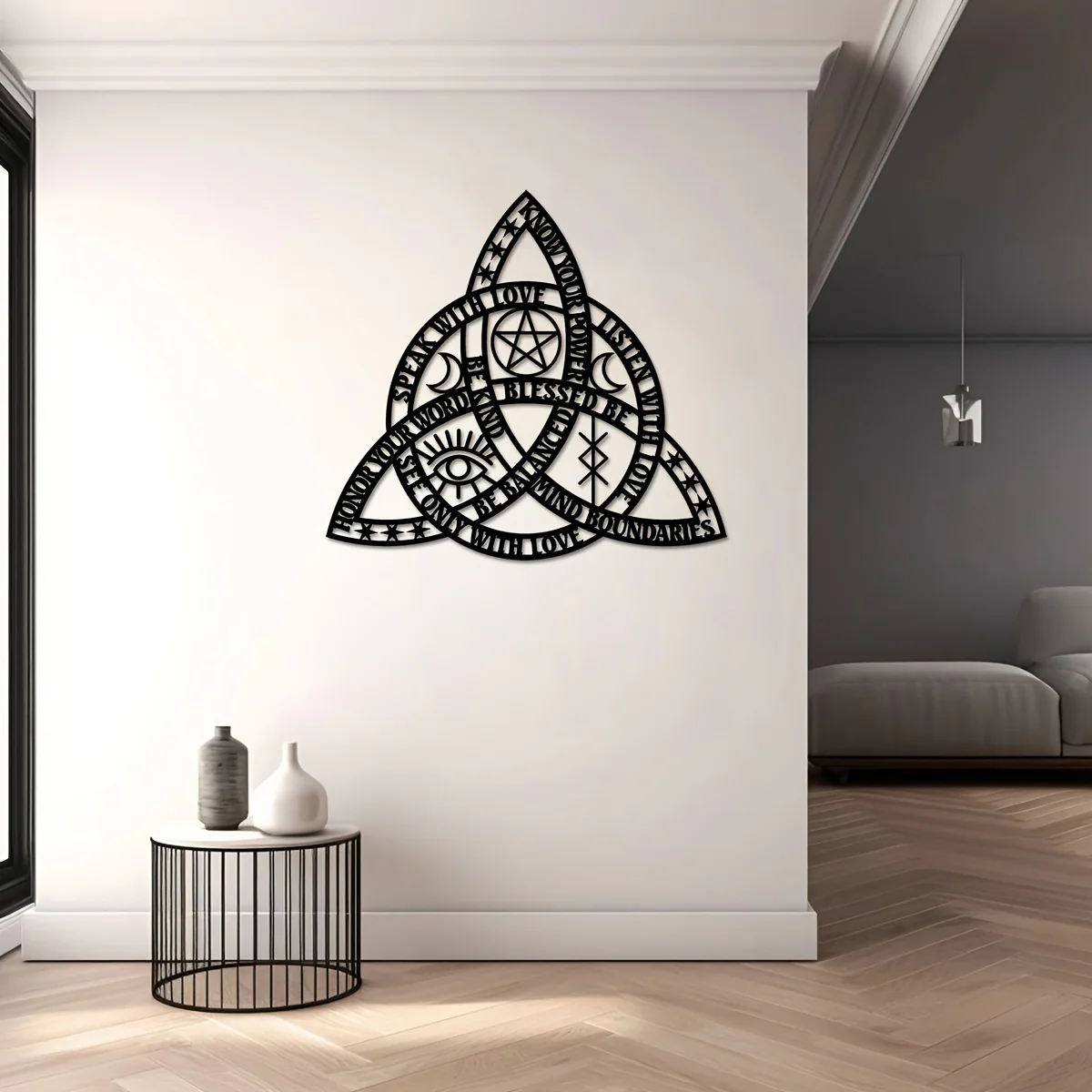 Verfraai je huis met de unieke charme van deze Goede Heks Keltische Knoop Metalen Wandkunst. Het triquetra oneindigheid ontwerp is geïnspireerd door Ierse tradities en biedt een stijlvolle, art deco twist. Dit moderne wandornament is perfect als housewarming cadeau of als creatieve aanvulling in je woonkamer, slaapkamer of kantoor.