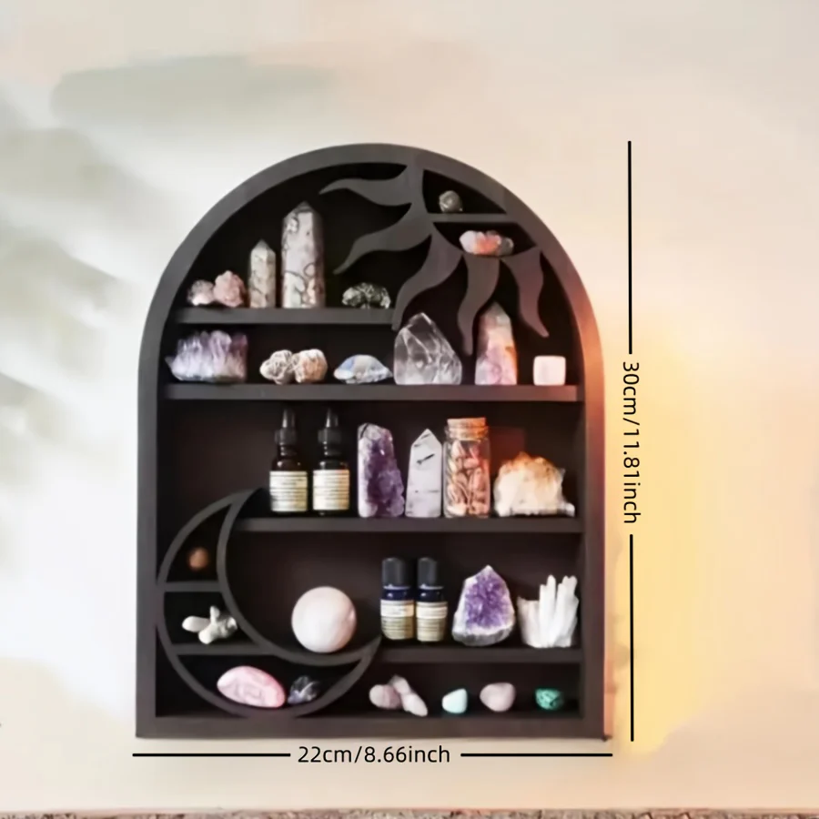 De CrystalDisplay – Halve Maan Kristallen Muurplank is de perfecte oplossing om jouw favoriete decoratiestukken op een elegante manier te presenteren. Met zijn unieke halve maan design en stevige constructie brengt het een vleugje magie in elke ruimte. Geschikt voor verschillende interieurstijlen en ideaal om kristallen, kaarsen of andere accessoires te tonen. Deze zwevende plank voegt een moderne, maar toch serene sfeer toe aan jouw huis.