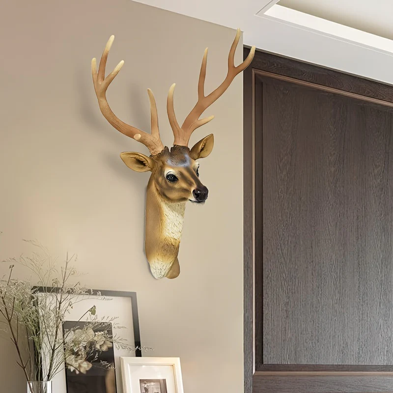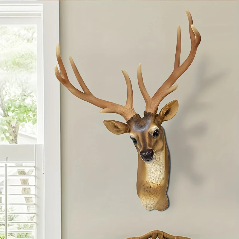 Verfraai je woonkamer, slaapkamer of entree met deze prachtige vintage hertenkop wandkunst. Gemaakt van duurzaam hars en voorzien van een realistisch gewei, voegt dit sculptuur een vleugje natuur en verfijning toe aan je ruimte. Ideaal voor feestelijke gelegenheden zoals Halloween, Kerstmis, Pasen en Thanksgiving, maar ook perfect als tijdloos woonaccessoire.