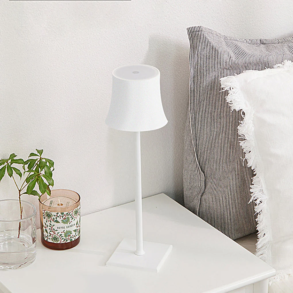 - Ervaar de vrijheid van draadloze verlichting terwijl deze tafellamp u bevrijdt van de beperkingen van traditionele stroombronnen. Met een aanraakgevoelige schakelaar die handig bovenop de lamp is geplaatst, was het aanpassen van het licht naar de gewenste sfeer nog nooit zo eenvoudig.