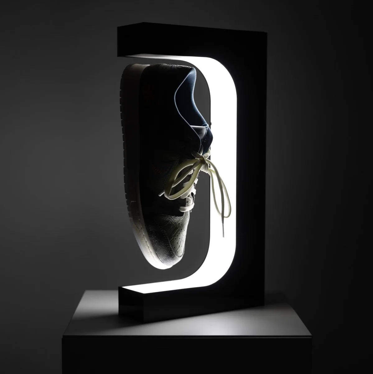 Unieke Schoenpresentatie met de Drijvende schoendisplay LED-lamp