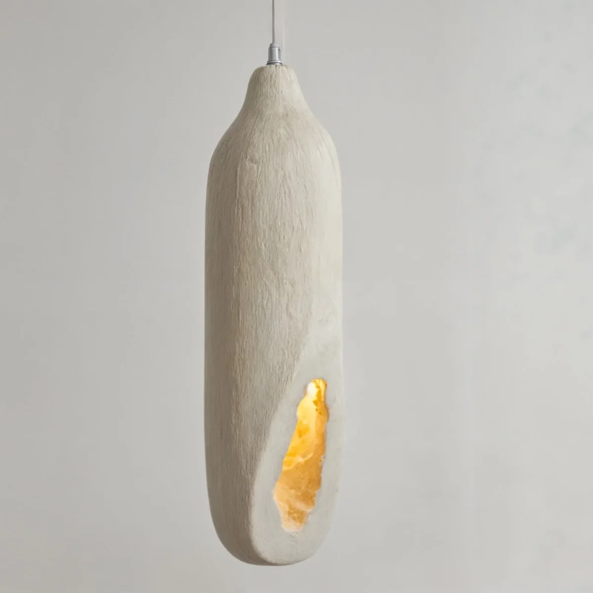 De lamp beschikt over een enkele resin kap, die discreet aan het plafond hangt via een minimalistische metalen staaf of kabel. Dit ontwerp zorgt voor een naadloze integratie in elke ruimte, terwijl de dimfunctie u in staat stelt de lichtintensiteit naar wens aan te passen.