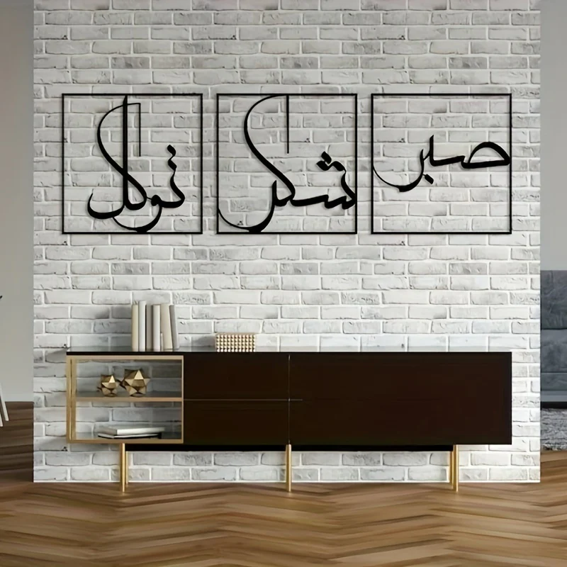 Geef je huis een serene en moderne uitstraling met onze 3-delige set Moderne Islamitische Wandkunst. De metalen sculpturen met de woorden ‘Dankbaar,’ ‘Vertrouwen,’ en ‘Dankbaar’ voegen een gevoel van spiritualiteit en verfijning toe aan elke ruimte. Met een minimalistisch ontwerp past deze set perfect bij een stijlvolle en hedendaagse inrichting.