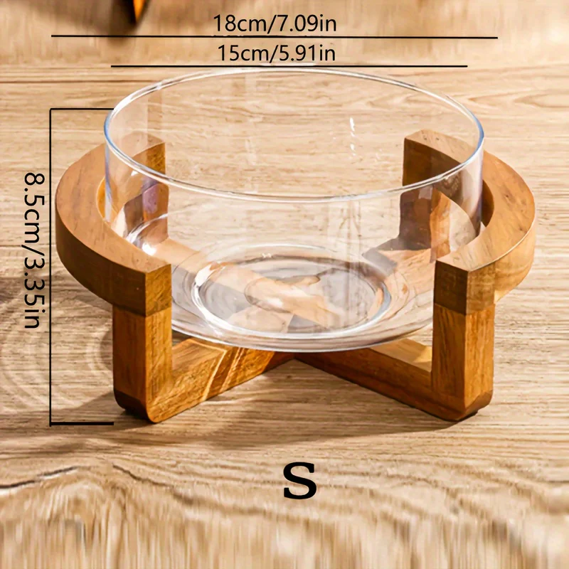 - Heldere glazen kom: Transparant glas gecombineerd met een bamboe standaard, geschikt voor elke tafelsetting.
