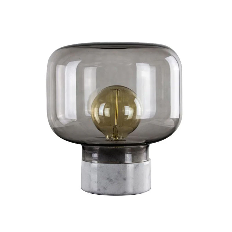 Gerookt Glazen Trommel Tafellamp van Luminoir: Voeg een moderne, Scandinavische sfeer toe aan uw slaapkamer of woonkamer met deze stijlvolle tafellamp. Het gerookte glazen design en de marmeren basis creëren een elegante en verfijnde uitstraling, perfect om een warme en uitnodigende ambiance te scheppen. Deze lamp combineert functionaliteit met esthetiek, waardoor het een onmisbare aanvulling is voor elk interieur.