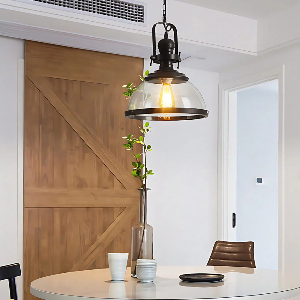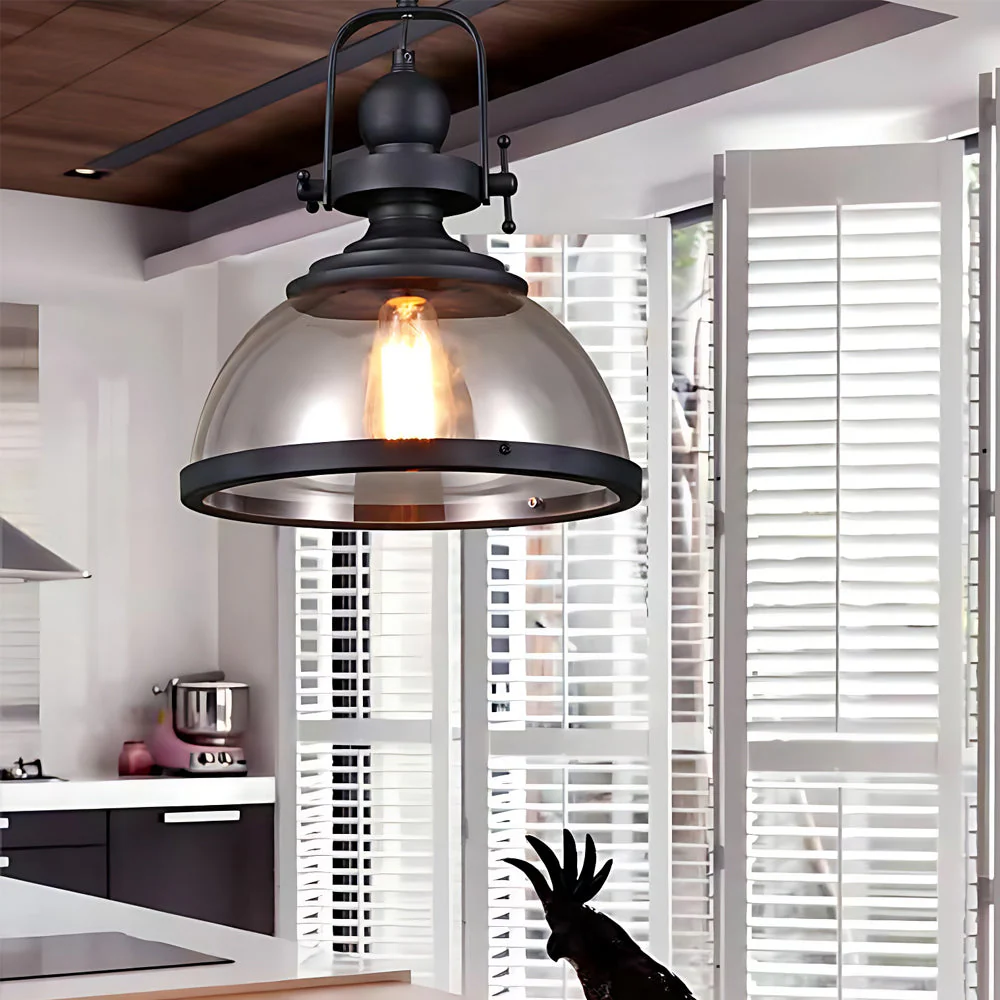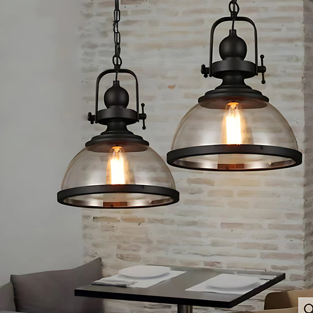 Geef uw interieur een stijlvolle industriële uitstraling met de GlassDome Hanglamp. Deze retro plafondlamp, met een glazen koepel en robuuste materialen, combineert modern design met warme, romantische verlichting. Perfect voor keukens, eetkamers, woonkamers of cafés, deze lamp biedt niet alleen sfeerverlichting, maar is ook een echte blikvanger in elke ruimte.