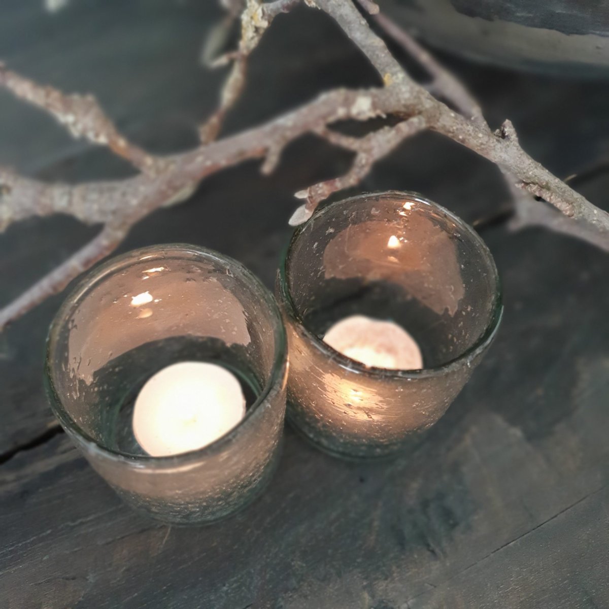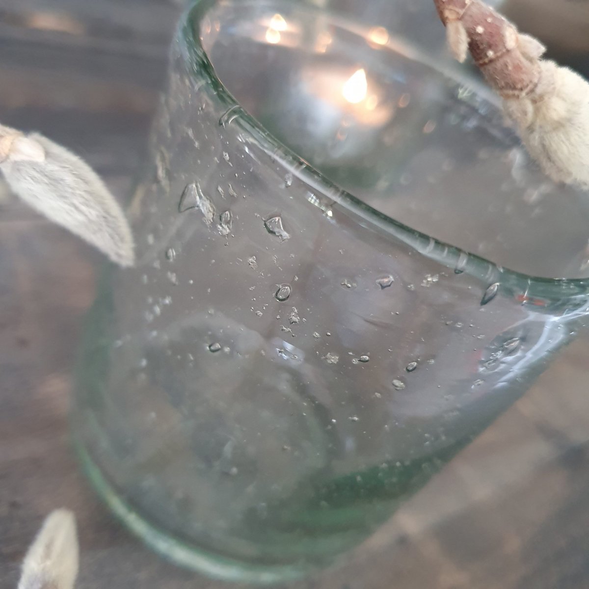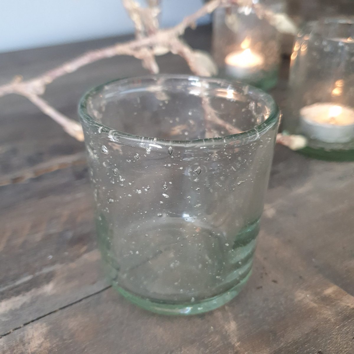 Superleuke kleine windlichtjes van helder, dik glas met de welbekende ‘bubbles’.