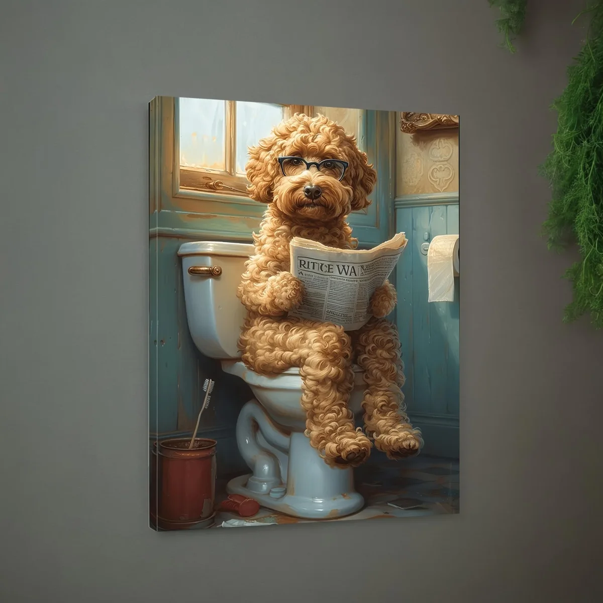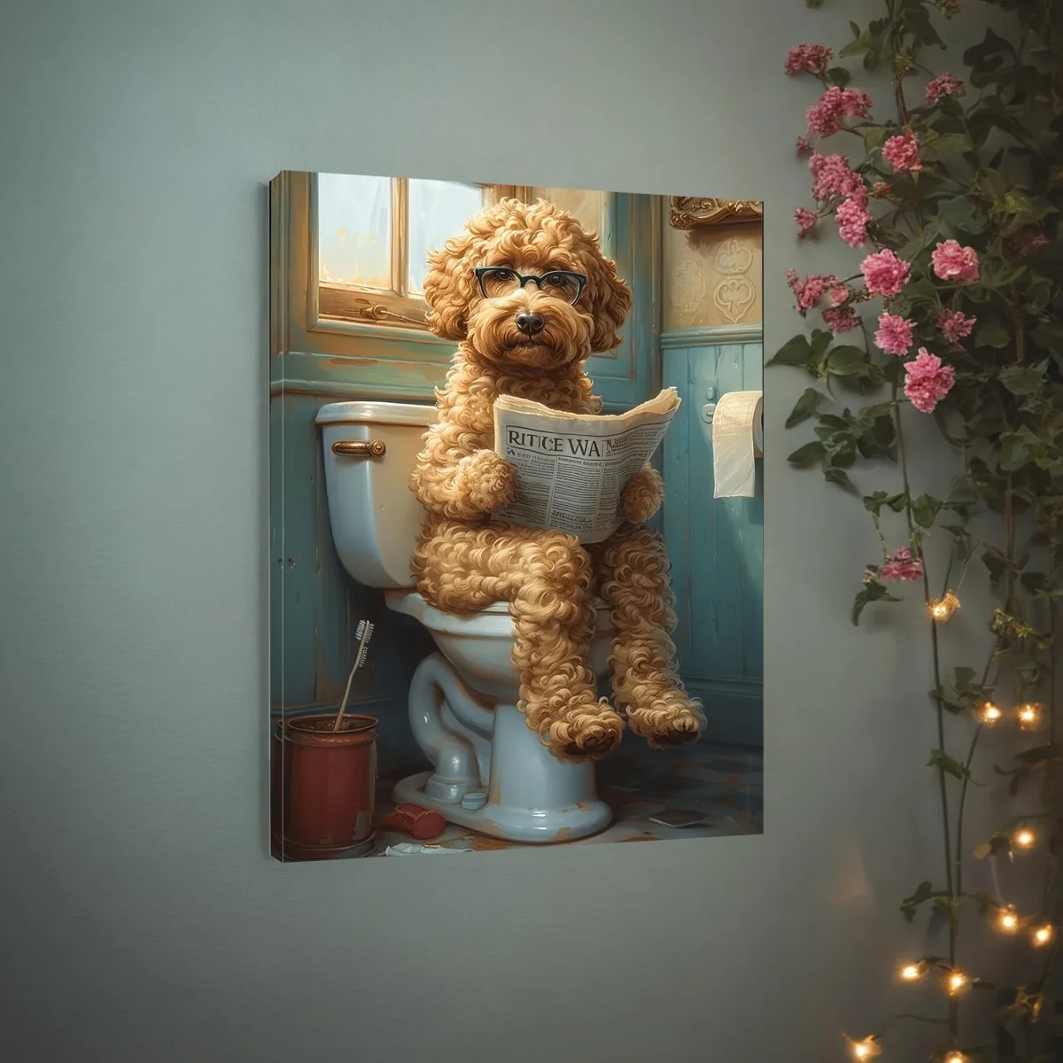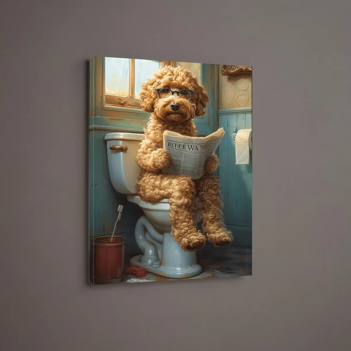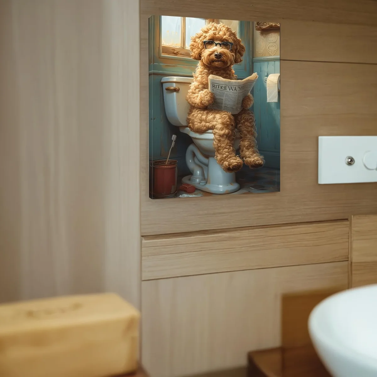 Deze Goldendoodle canvas wandkunst is een unieke toevoeging aan uw badkamer, perfect voor hondenliefhebbers die hun ruimte willen opvrolijken met iets humoristisch en stijlvol. Met een gedetailleerde afbeelding van een Goldendoodle die de krant leest op het toilet, brengt dit kunstwerk gegarandeerd een glimlach op uw gezicht en zorgt het voor een unieke sfeer in uw badkamer of andere leefruimte.