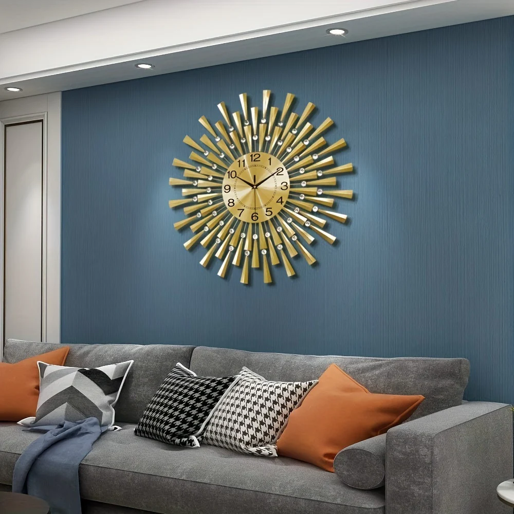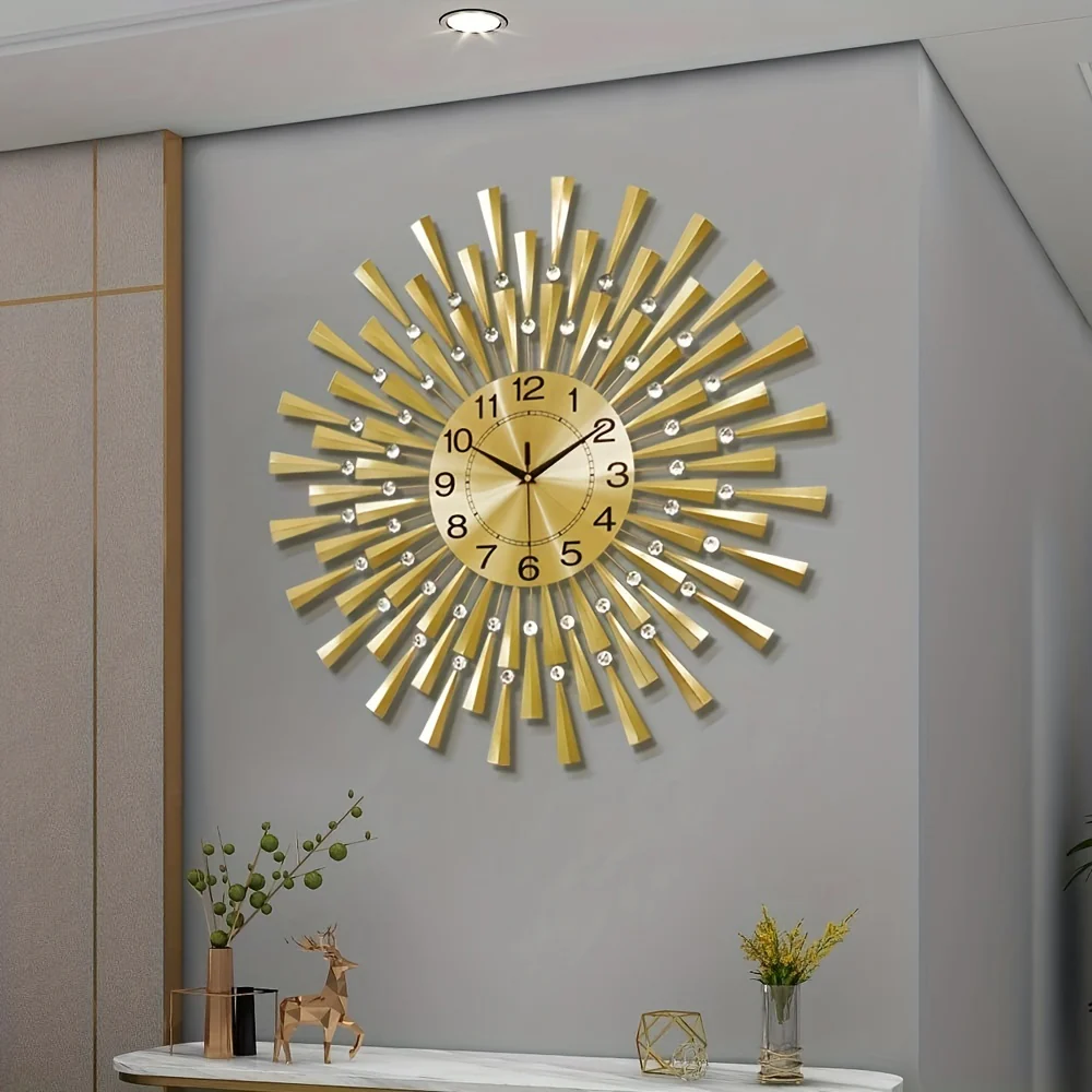 Breng stijl en functionaliteit in je huis met deze moderne gouden muurklok. Met een elegante en stille werking zorgt deze klok voor rust in elke ruimte zonder storende tikkende geluiden. Ideaal voor woonkamers, slaapkamers en kantoren, deze batterijgevoede klok biedt niet alleen tijdsweergave, maar fungeert ook als een opvallend decoratief stuk. Het kristalheldere ontwerp voegt een vleugje luxe toe aan je interieur.