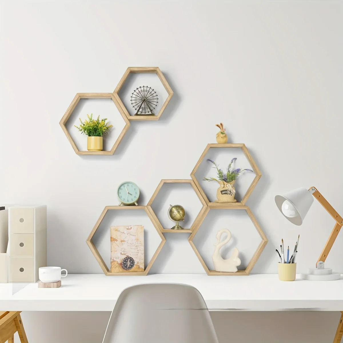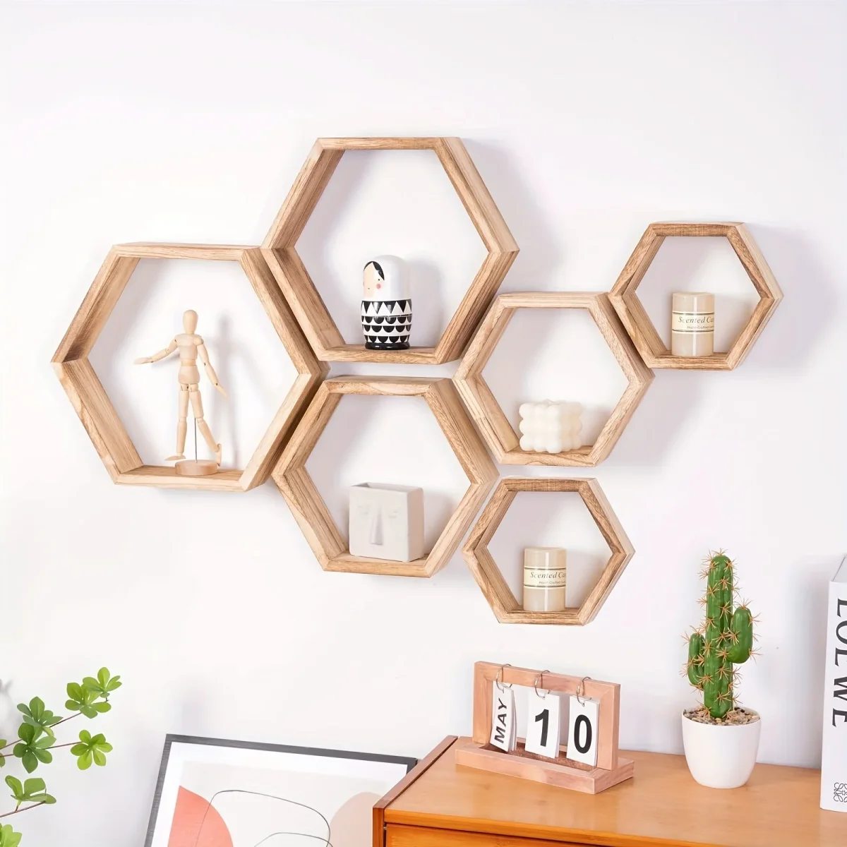 De HexaWood zeshoekige zwevende planken brengen een rustieke en natuurlijke sfeer in elke kamer. Perfect voor het opslaan en tentoonstellen van planten, decoratieve items of keukenaccessoires, deze honingraatvormige houten planken zijn een prachtige aanvulling op je interieur. Gemaakt van onafgewerkt hout, bieden ze een boerderij-achtige charme die ideaal is voor diverse kamertypes, zoals de keuken, woonkamer of slaapkamer.