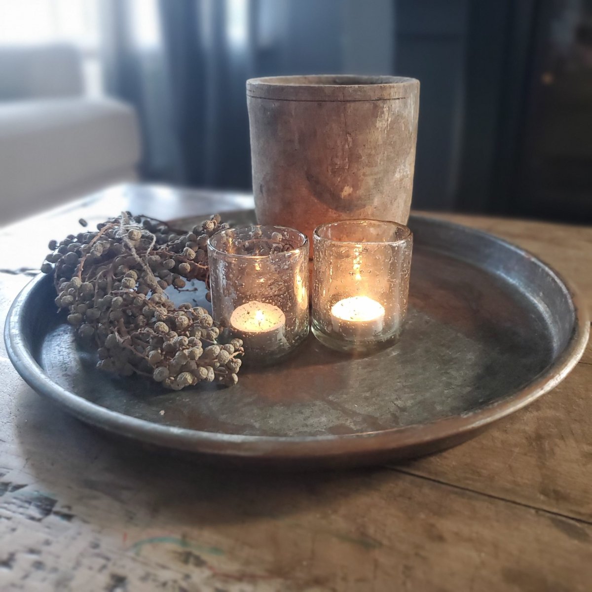 Ook heel mooi om er diverse formaten kaarsen op te zetten die qua kleur enigszins matchen.