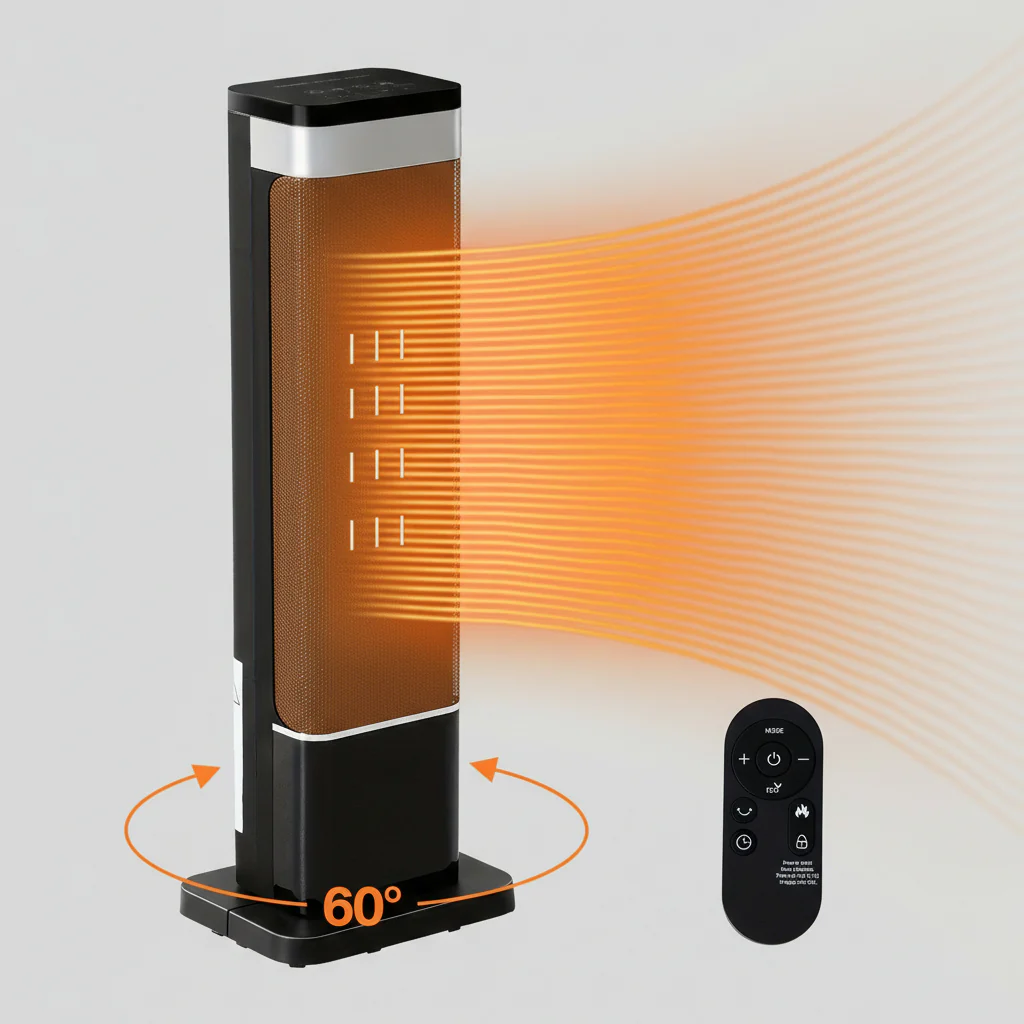 - Draaibare toren – Oscillatiefunctie verdeelt warmte gelijkmatig door de ruimte.