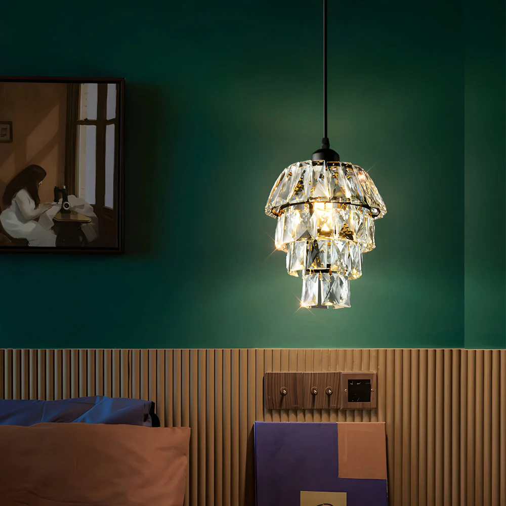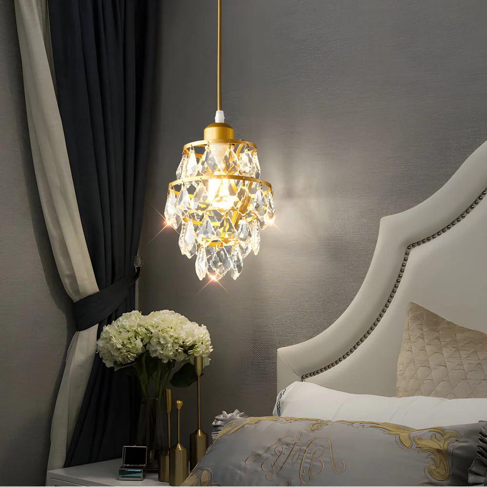 Kristallen Hanglamp in Goud/Zwart – 1-Licht Mini Kroonluchter