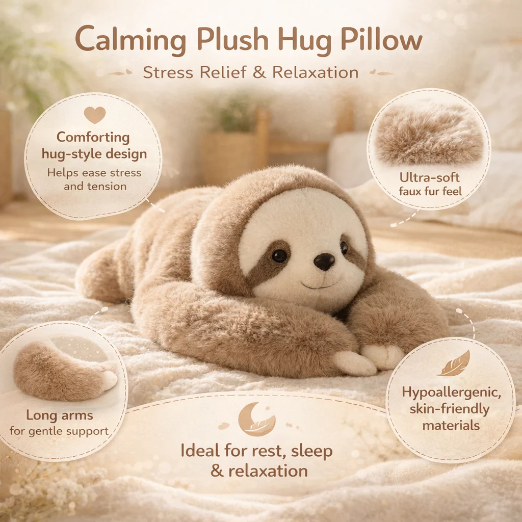 Het kalmerend knuffelkussen biedt een zachte, geruststellende omhelzing die helpt om stress te verminderen en diepe ontspanning te bevorderen. Dankzij de ultrazachte imitatiebont en lange armen voelt dit kussen warm, veilig en comfortabel aan. Met een lengte van 45 cm geeft het steun tijdens slapen, werken of ontspannen en zorgt het voor rust op elk moment van de dag.