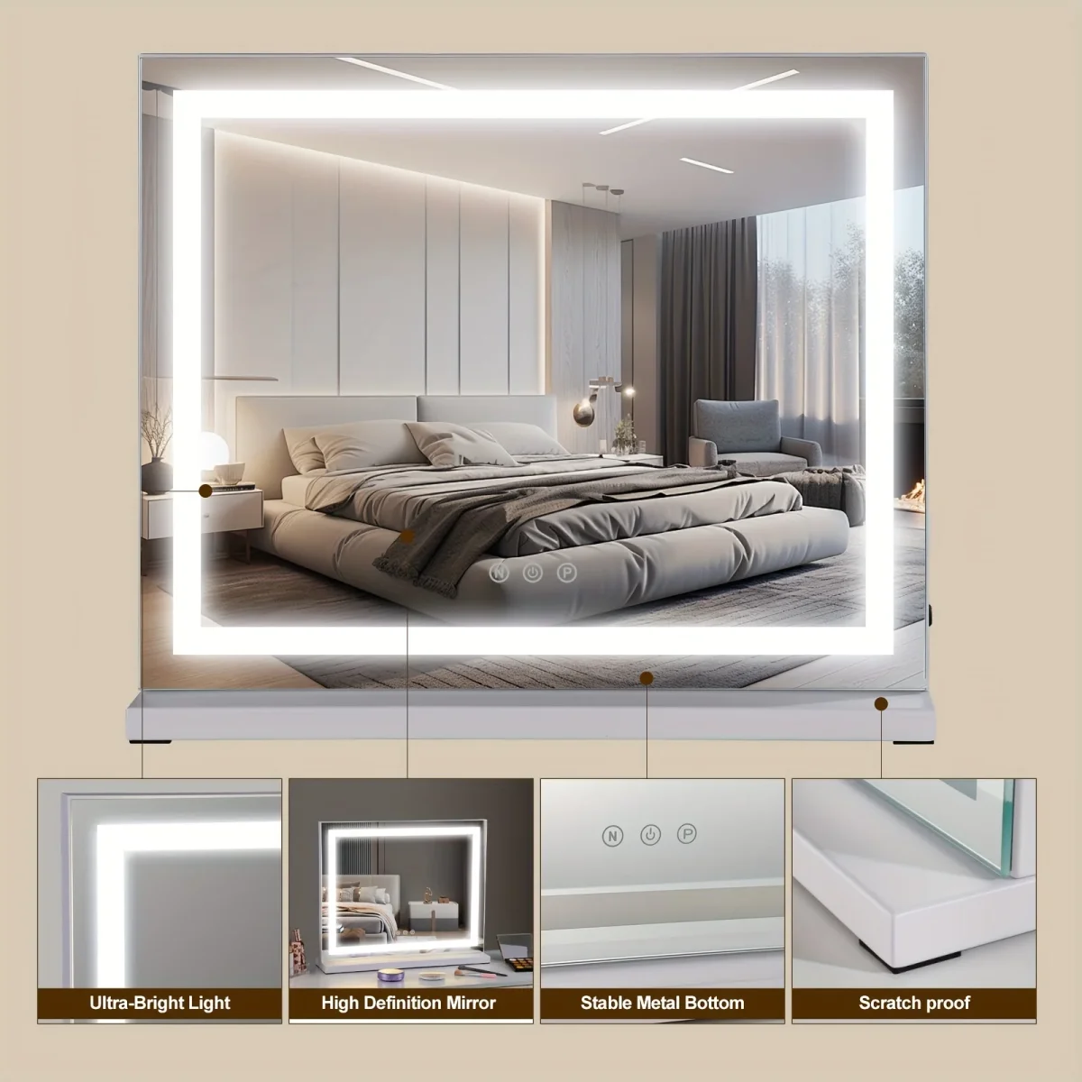 De LED Make-up Spiegel biedt perfecte verlichting voor jouw dagelijkse make-up routine. Met de horizontale LED-lichtstrip en slimme touchbediening kun je eenvoudig de lichtintensiteit aanpassen. Deze draagbare spiegel is USB-aangedreven, waardoor hij ideaal is voor gebruik thuis of onderweg. Dankzij het strakke design en het ijzeren frame past hij perfect op elke tafel of kaptafel. De spiegel heeft ook een verlichtingsfunctie, wat een magische gloed toevoegt aan je verzorgingsruimte.