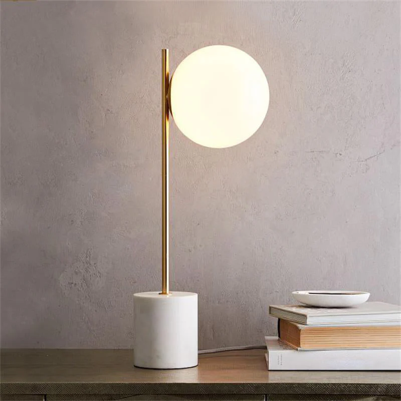 De MarbleGlow Tafellamp combineert modern design met tijdloze elegantie. De sferische witglazen kap zorgt voor een zachte en diffuse verlichting, terwijl de stevige marmeren basis een luxe uitstraling geeft. Perfect voor in de woonkamer, slaapkamer, of studeerkamer, deze lamp is een prachtige aanvulling op elk modern interieur.