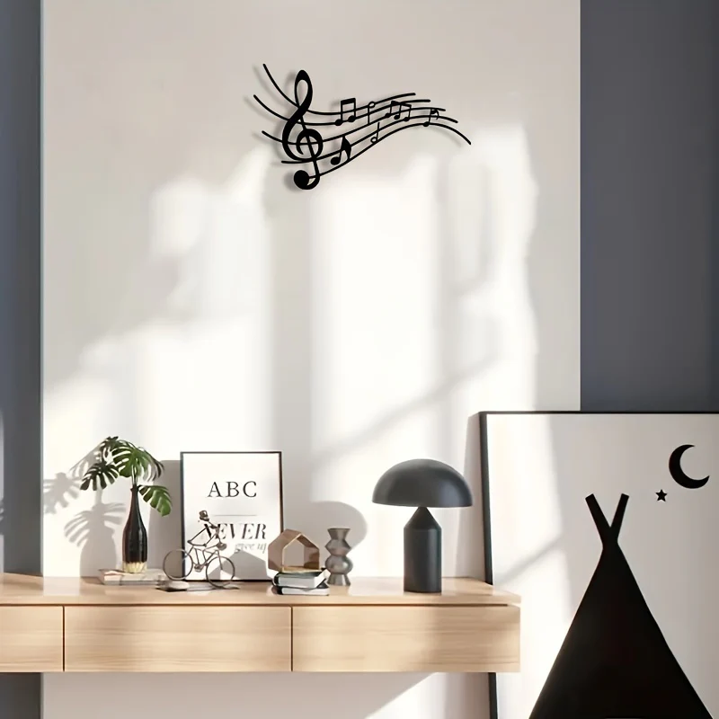 Voeg een stijlvolle en muzikale flair toe aan je woonruimte, slaapkamer, keuken of tuin met deze Zwarte Metalen Muzieknoot Muurkunst. Deze 3D hangende sculptuur is perfect als decoratief element voor muziekliefhebbers en ideaal voor speciale gelegenheden zoals Kerstmis, Halloween of als cadeau voor een nieuw huis. Gemaakt van stevig ijzer, straalt dit kunstwerk elegantie en duurzaamheid uit.