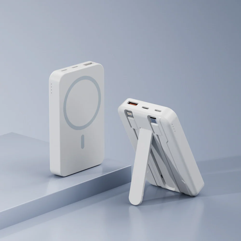 Blijf de hele dag opgeladen met deze powerbank met 10000mAh. Dankzij magnetisch vastklikken en draadloos opladen laad je je telefoon makkelijk op, ook onderweg. De ingebouwde standaard maakt handsfree kijken prettig tijdens video’s of bellen. Met snelladen via draadloos of USB C heb je snel extra batterij, ideaal voor reizen, werk en dagelijks gebruik.