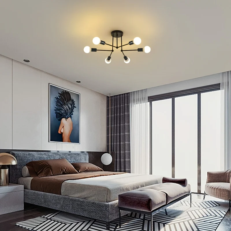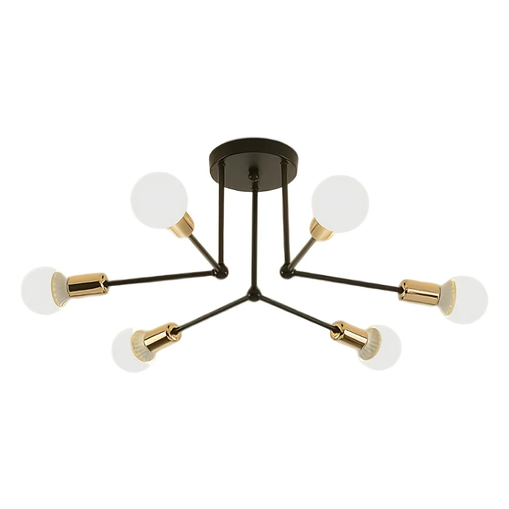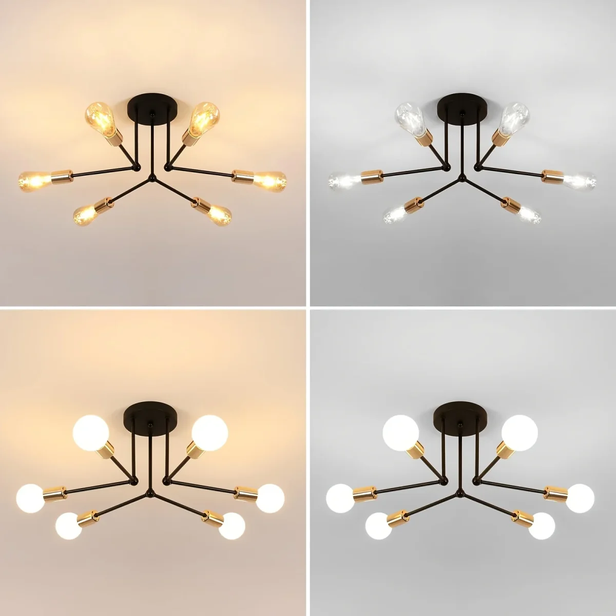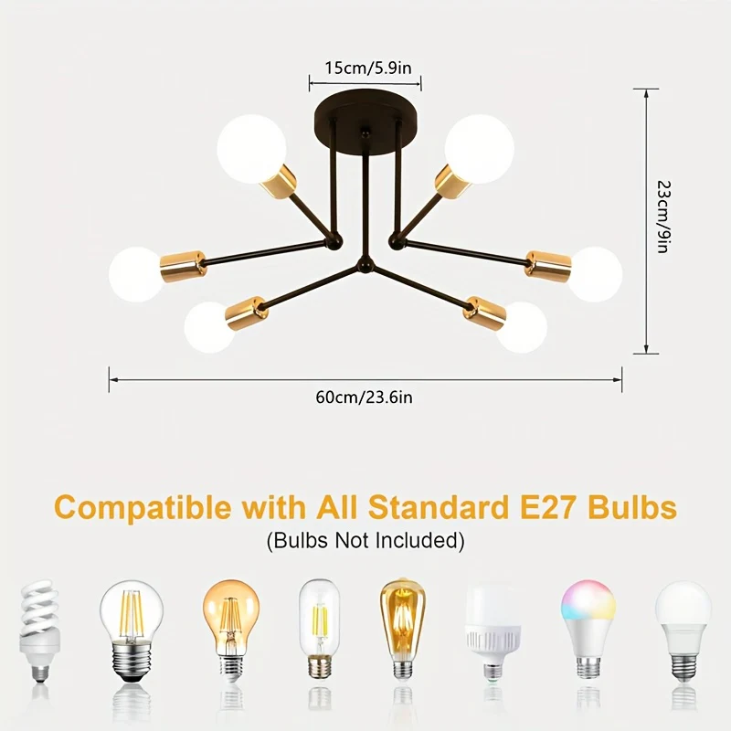 Geef uw interieur een moderne en industriële uitstraling met deze unieke 6-kops plafondlamp. Gemaakt van stevig smeedijzer met een elegant zwart-goud ontwerp, biedt deze lamp stijlvolle en efficiënte verlichting voor elke binnenruimte. Perfect geschikt voor woonkamers, eetkamers, en moderne kantoren.