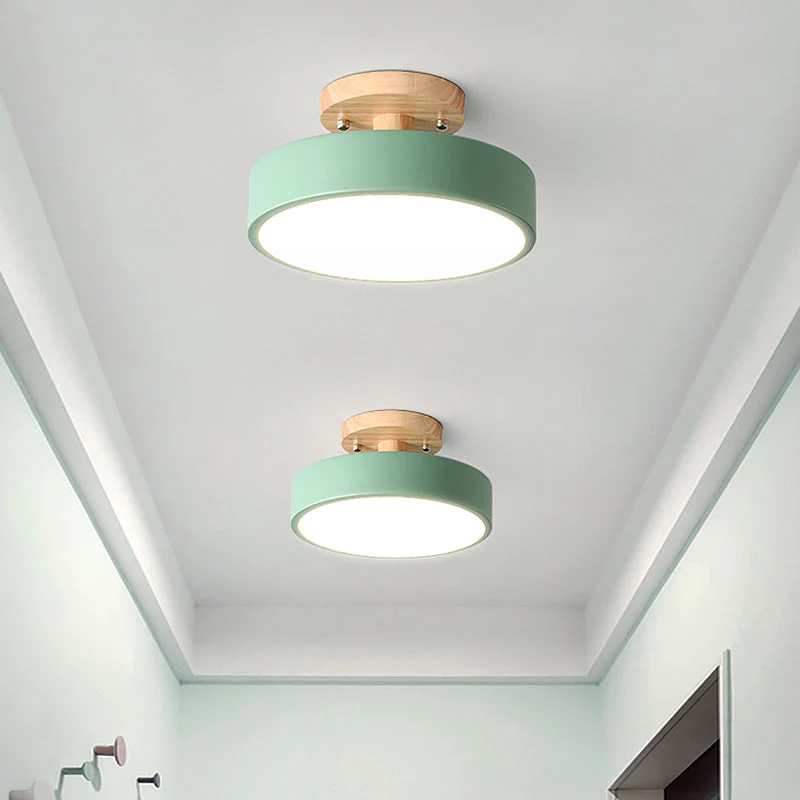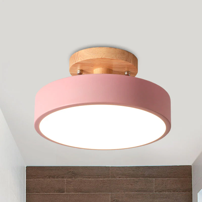 Scandinavische Trommel LED Plafondlamp met Hout voor Gang