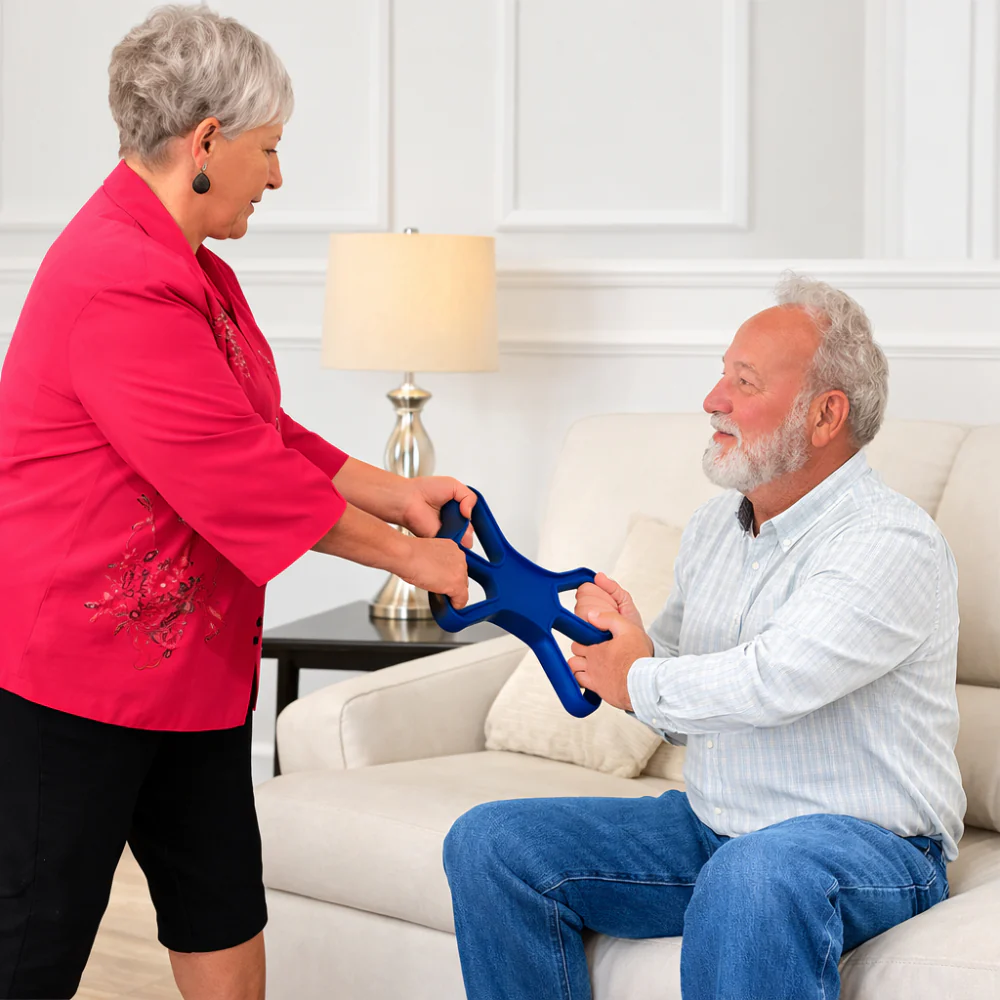- Extra grip: De antislip handgreep helpt om steviger vast te houden tijdens het opstaan.