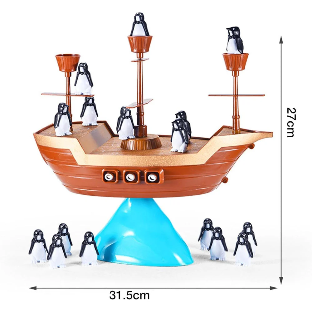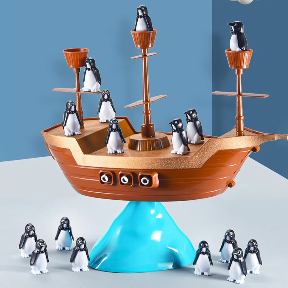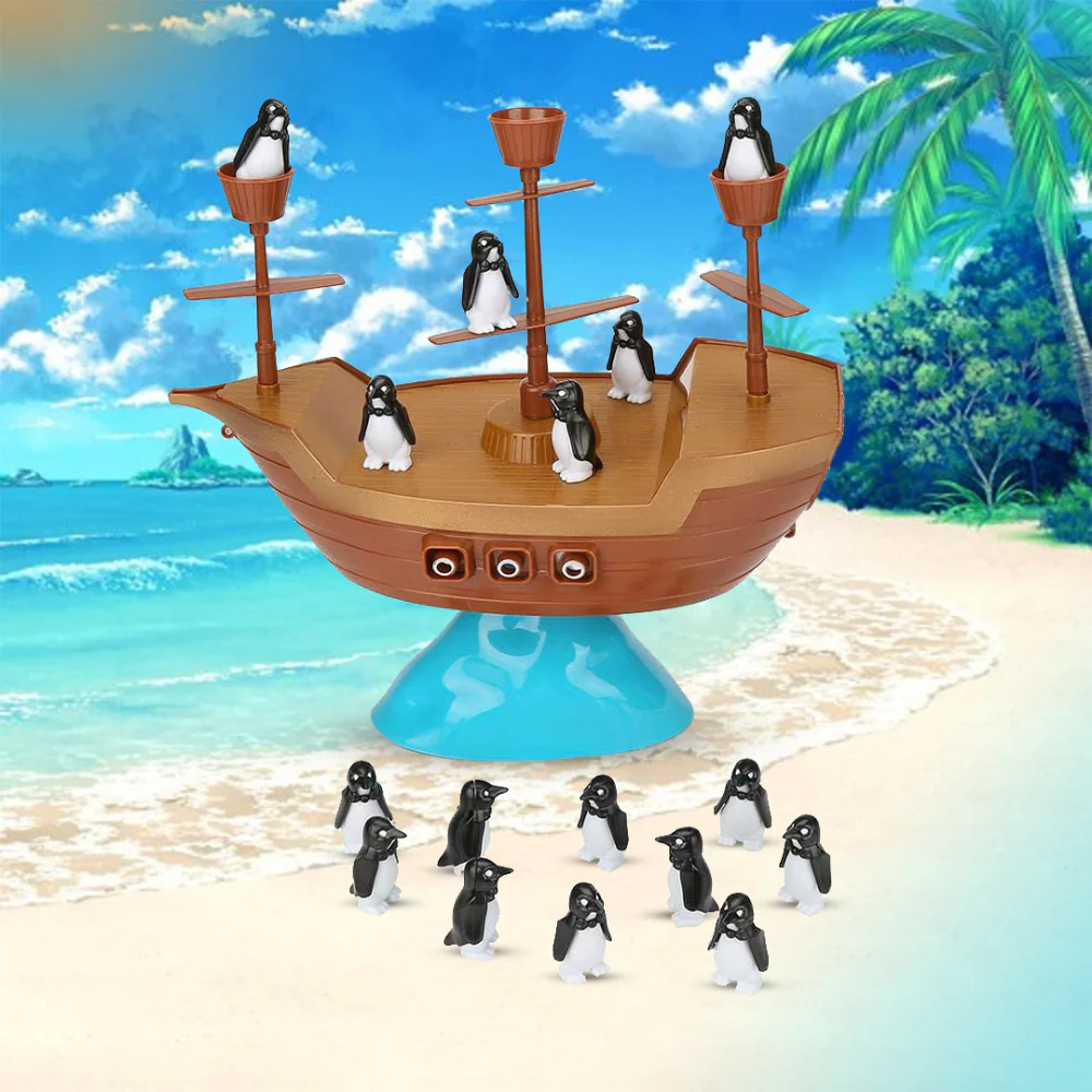 Dit speelgoed balansspel met piratenschip en pinguin figuren zorgt voor spannend spel waarbij kinderen hun balans, coördinatie en logisch denken oefenen. Tijdens het plaatsen van de figuren op het wiebelende schip proberen spelers het evenwicht te bewaren. Dit interactieve spel voor kinderen maakt elke ronde anders en stimuleert creatief denken, geduld en plezier tijdens het spelen.