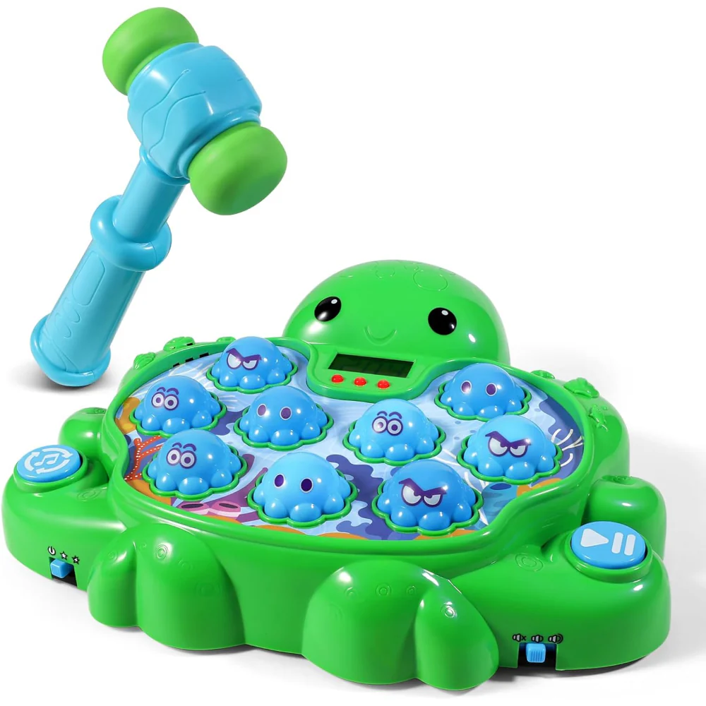 Laat kinderen actief spelen met dit vrolijke speelgoed hamer spel in een leuke octopus vorm. Dit interactieve reactiespel helpt bij het ontwikkelen van hand oog coördinatie terwijl kinderen plezier hebben tijdens het slaan op de bewegende figuren. Het kleurrijke interactief speelgoed maakt spelen leuk voor thuis, kinderfeestjes en schoolactiviteiten.