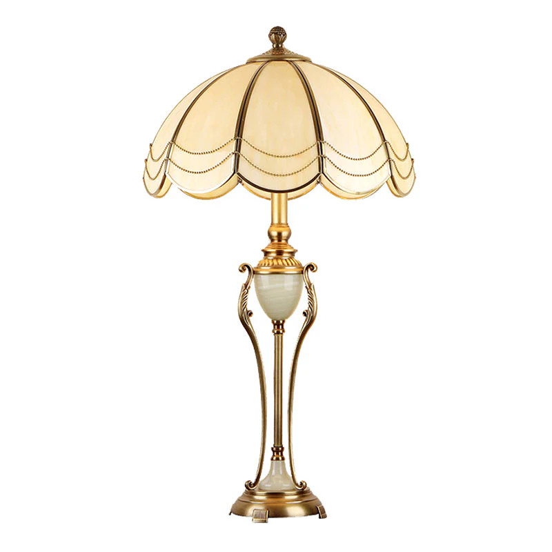 Elegante Traditionele Bronzen Tafellamp met Geschulpte Lampenkap