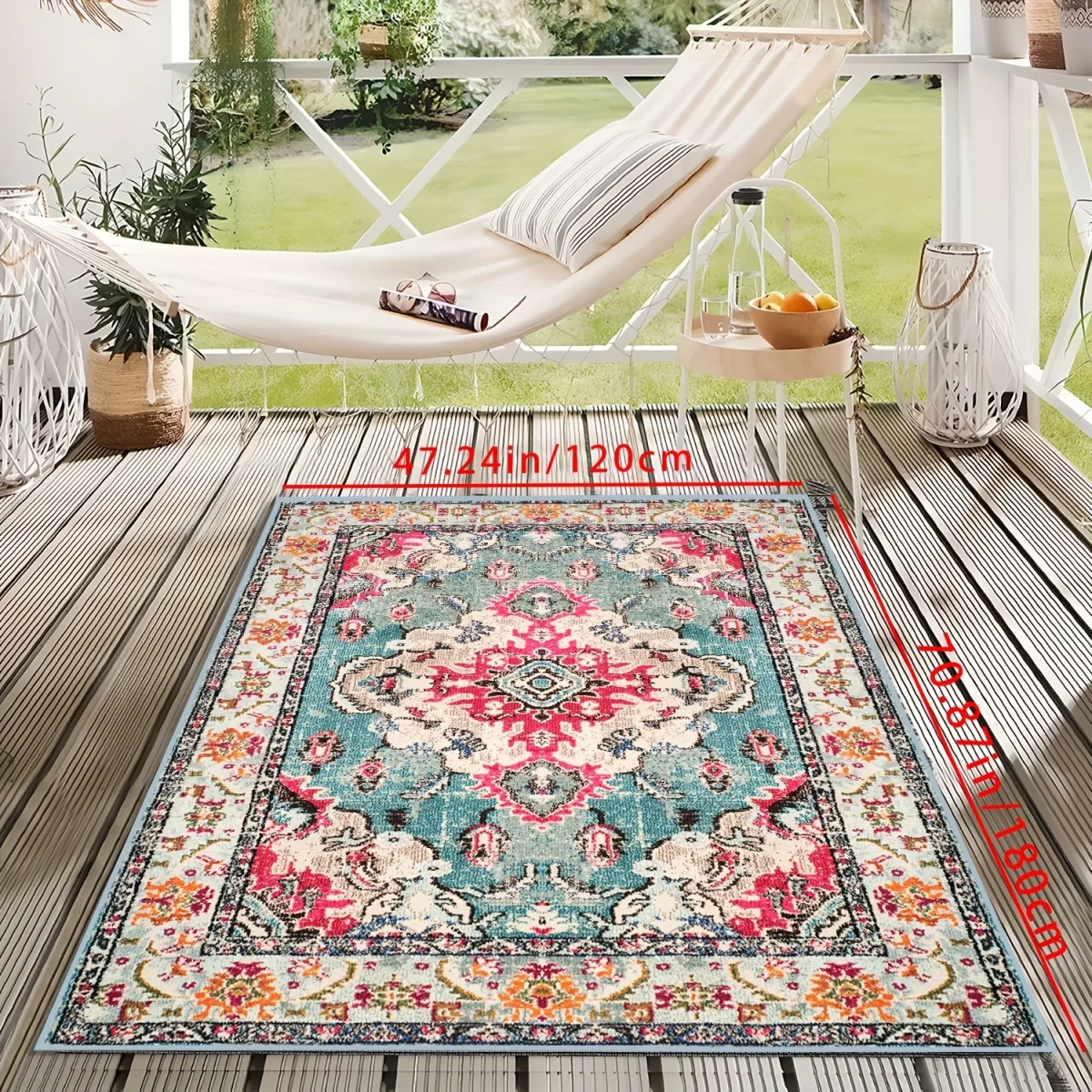 Dit prachtige vintage boho bloementapijt is ontworpen voor elke buitenruimte, van terrassen en tuinen tot de rand van het zwembad. Het tapijt is vlekbestendig, wasbaar en gemaakt van 100% polyester, waardoor het ideaal is voor langdurig gebruik in buitenomgevingen. Het rubberen antislipmateriaal zorgt ervoor dat het veilig op zijn plaats blijft liggen, ongeacht waar het wordt gebruikt.