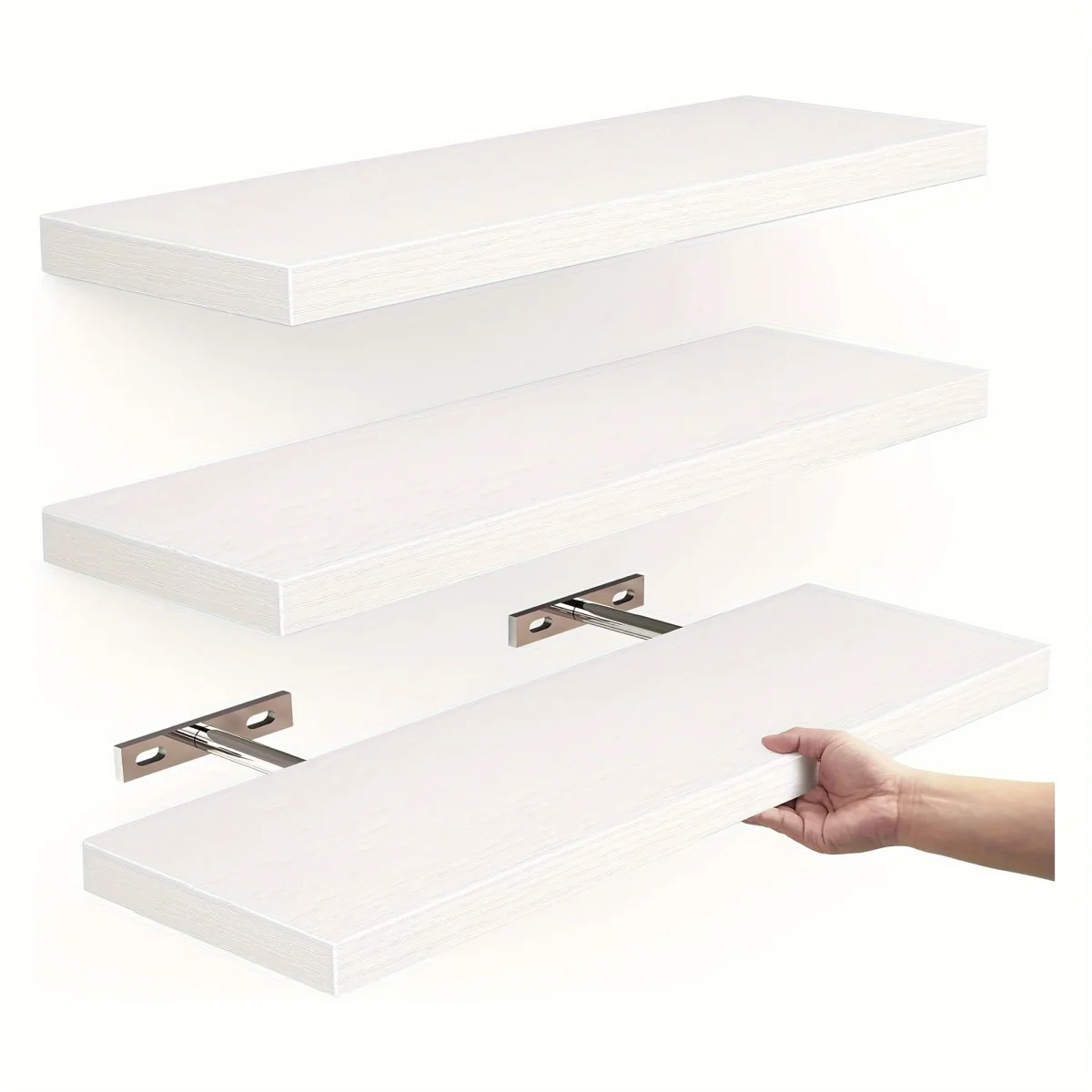 De VintageShelf set van 3 zwevende houten opbergplanken is ideaal voor het stijlvol opbergen van boeken, bloempotten, geurkaarsen en andere decoraties. Met hun vintage uitstraling en ruimtebesparende ontwerp zijn deze planken een praktische en esthetische toevoeging aan elke kamer, zoals de woonkamer, gang, of slaapkamer. Perfect voor het creëren van extra opslag en het toevoegen van decoratieve accenten.