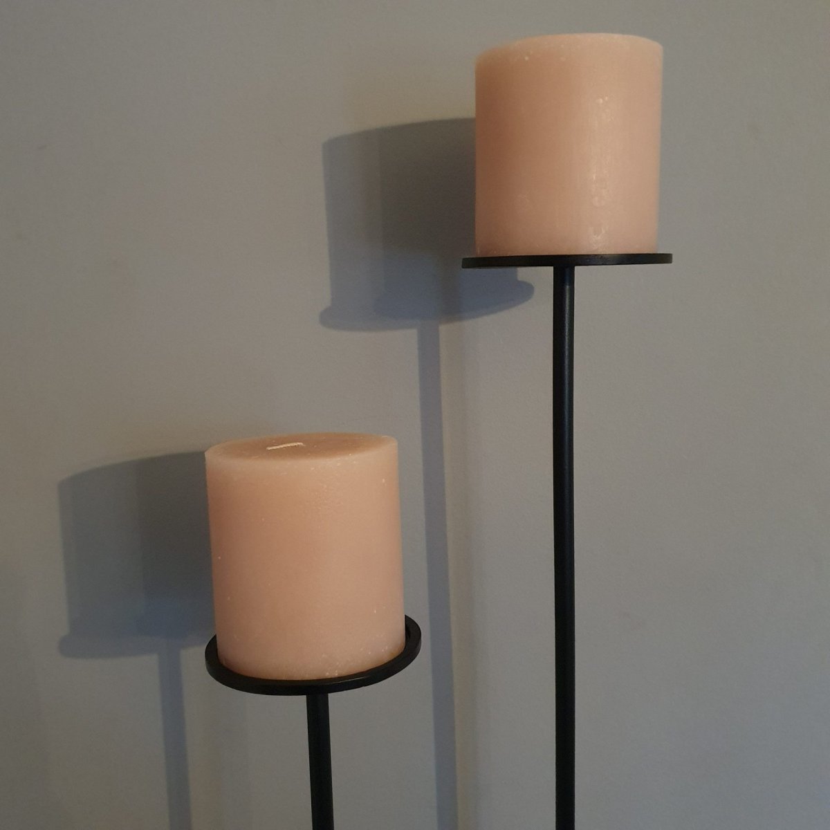 Deze zware, ijzeren kandelaar heeft een zware, stabiele (vierkante) voet van 16 cm x 16 cm en 5 mm dik!