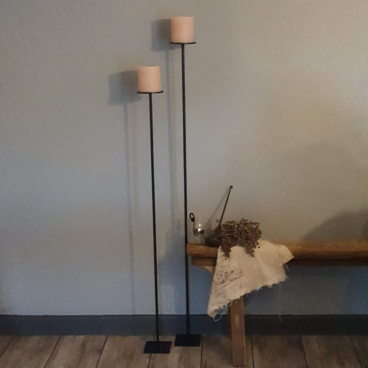 Iedere kandelaar is uniek, omdat het geen fabrieksproduct is. Hierdoor is er soms sprake van minimale ‘schoonheidsfoutjes’. Dit bepaalt echter des te meer het unieke karakter van het product, in dit geval vloerkandelaar.