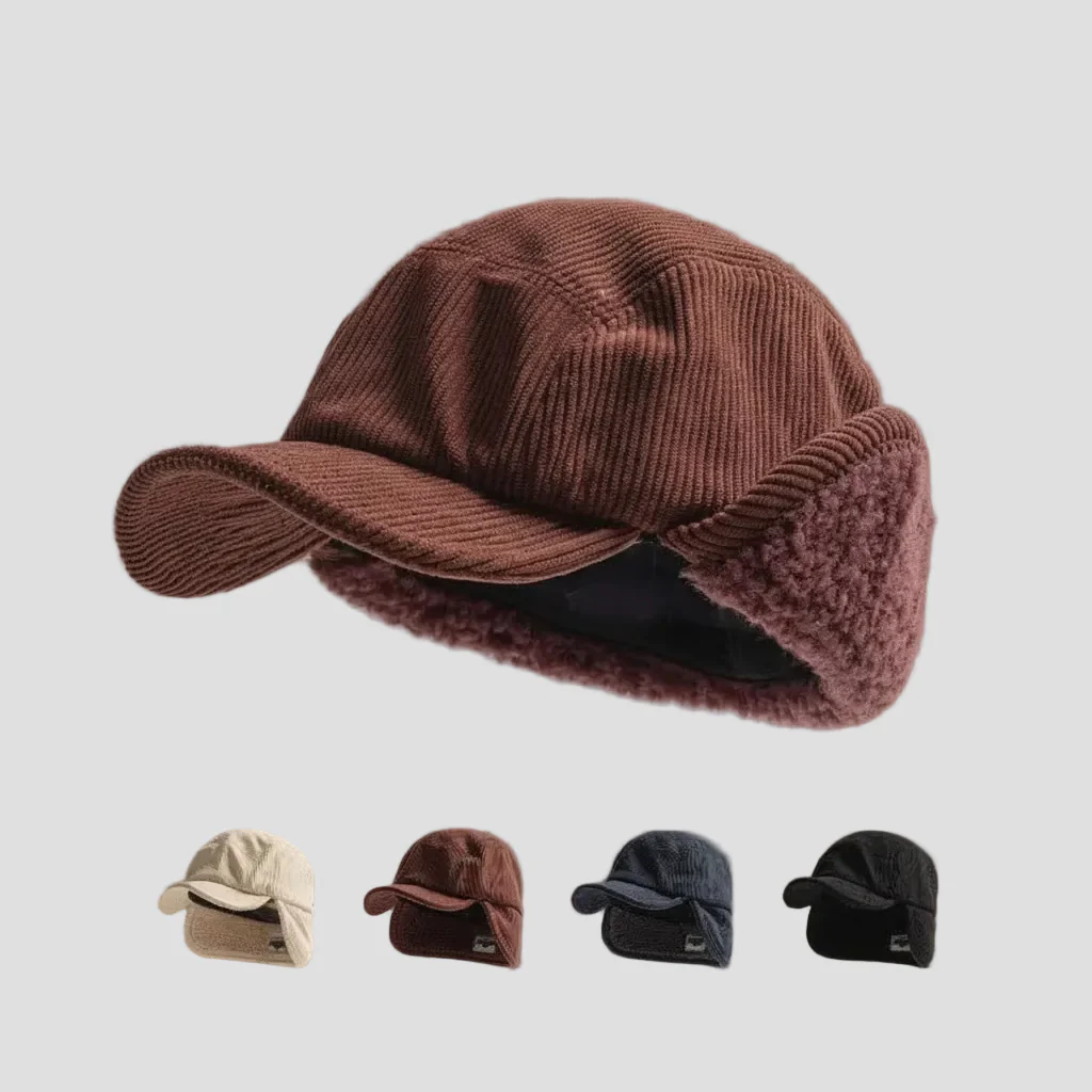Blijf warm tijdens koude dagen met deze winterpet in ribstof, gemaakt voor extra comfort en bescherming. De zachte fleece voering en de handige orenflappen helpen je hoofd en oren warm te houden bij wind en winterweer. Deze unisex wintermuts heeft een gebogen klep en een retro uitstraling, waardoor hij zowel praktisch als stijlvol is voor dagelijks gebruik, wandelen of onderweg.