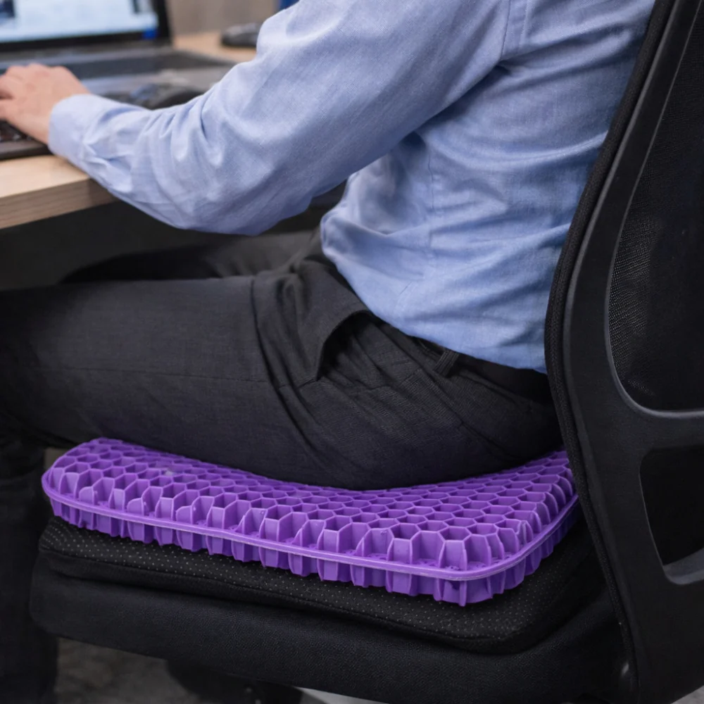 Dit zitkussen met gelkussen kern en honingraatstructuur verdeelt druk gelijkmatig tijdens langdurig zitten. Het vierkante ontwerp met antislip onderzijde blijft stabiel op stoel, autostoel of bureaustoel. Dankzij de ademende opbouw ondersteunt dit kussen dagelijks gebruik op kantoor, thuis of onderweg.