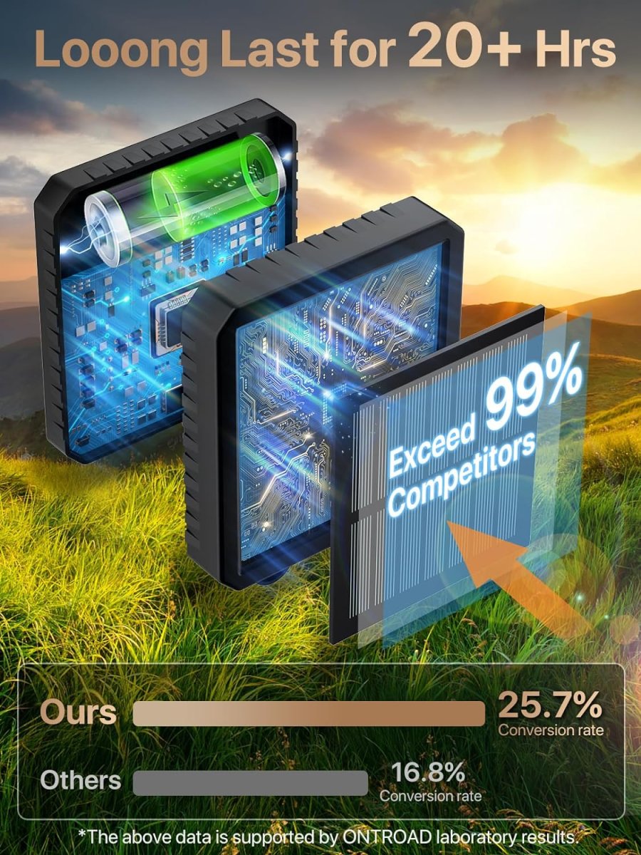 EXTRA LANGE WERKTIJD】ONTROAD zonne tuinverlichting is verbeterd door het gebruik van monokristallijne zonnepanelen, met een verbazingwekkende conversie-efficiëntie van 25,7%, wat meer dan 99% oplaadefficiëntie op de markt betekent, wat zorgeloos opladen mogelijk maakt, zelfs op bewolkte of korte winterdagen. In combinatie met 600mAh Ni-MH-batterijen hebben onze zonne tuinverlichting een levensduur van maximaal 20 uur, veel langer dan die op de markt met slechts de helft van de capaciteit en kortere verlichtingsduur. Romantiek de hele nacht door!